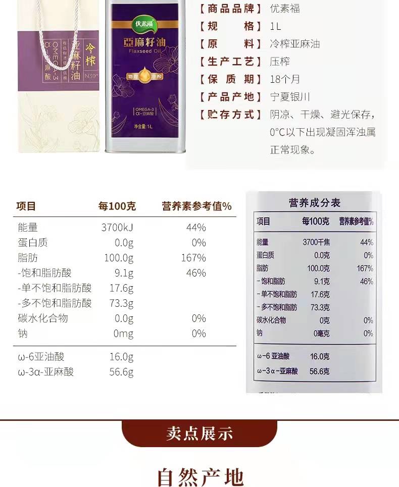 优素福冷榨亚麻籽油 Y003 1L(单位:盒) 蓝色