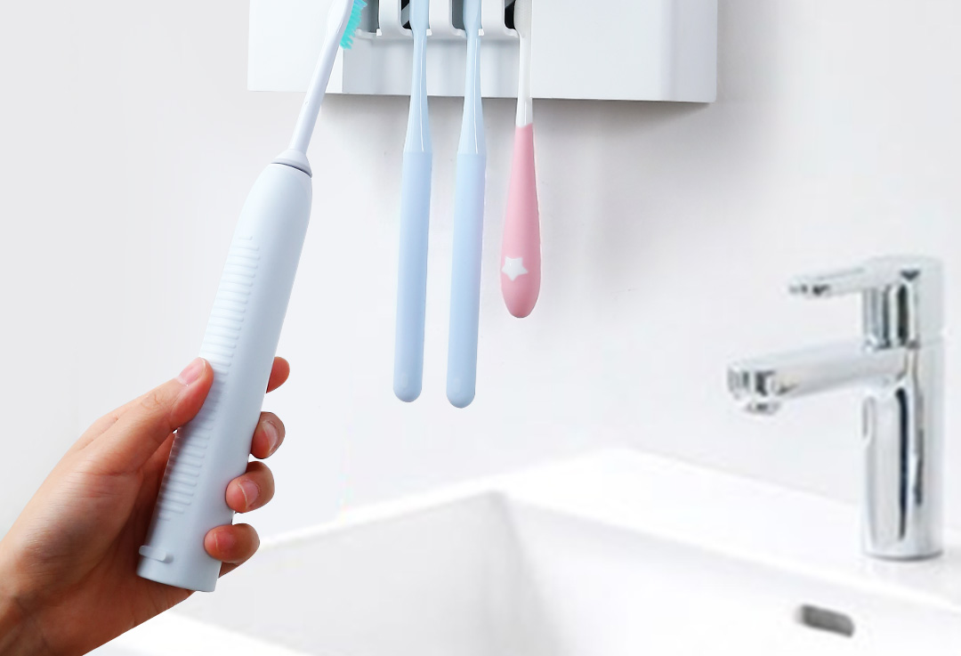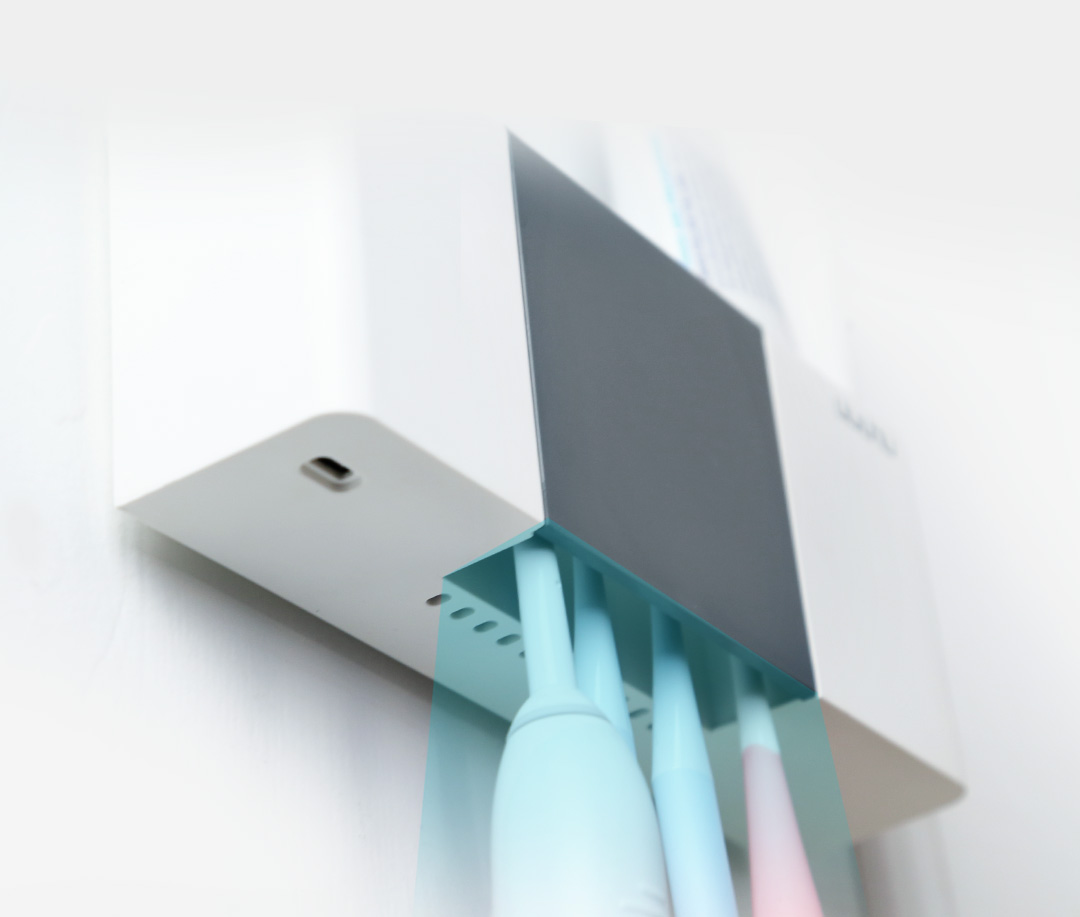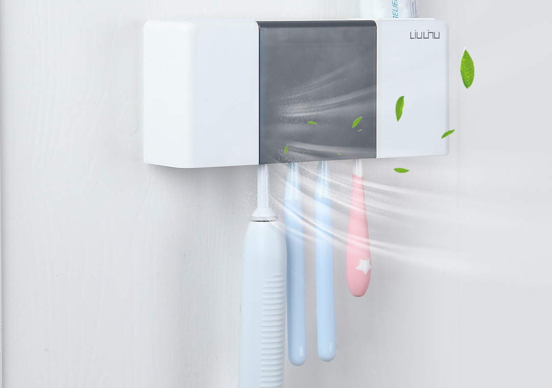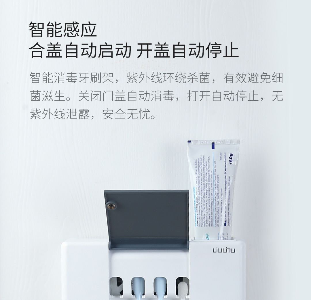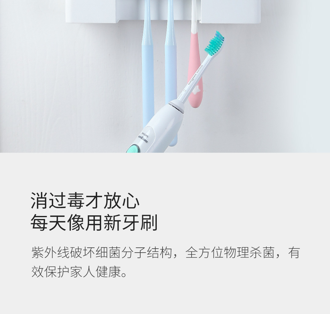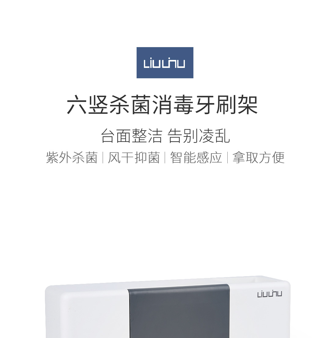 六竖智能杀菌消毒牙刷架紫外线自然风干感应免打孔洗漱用品收纳架 白色