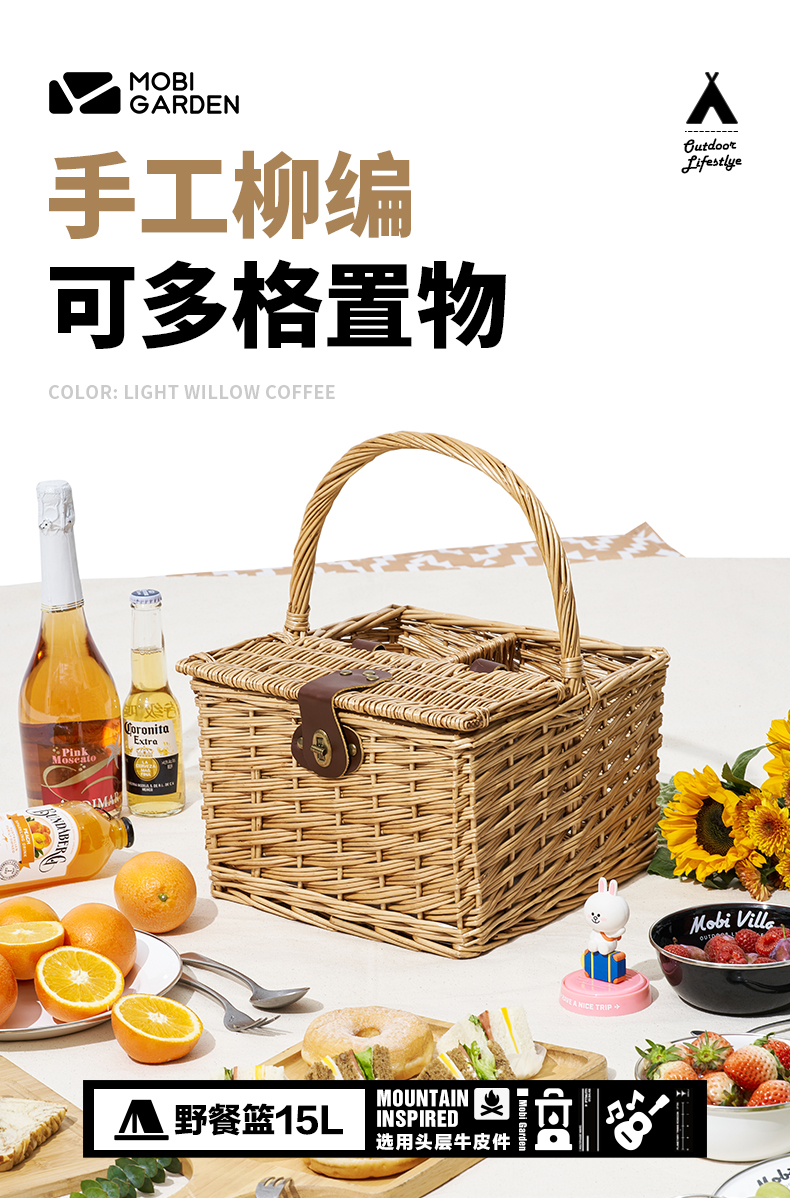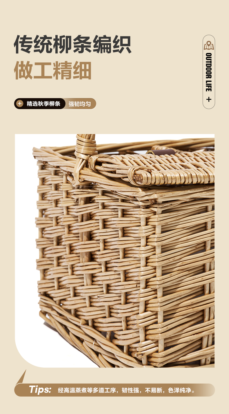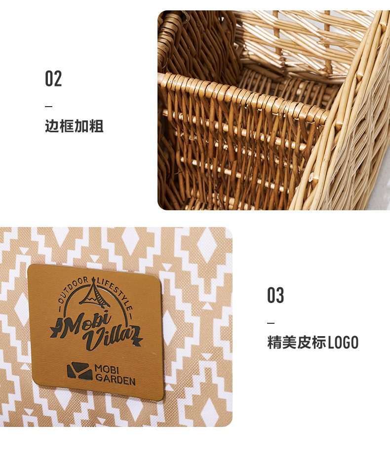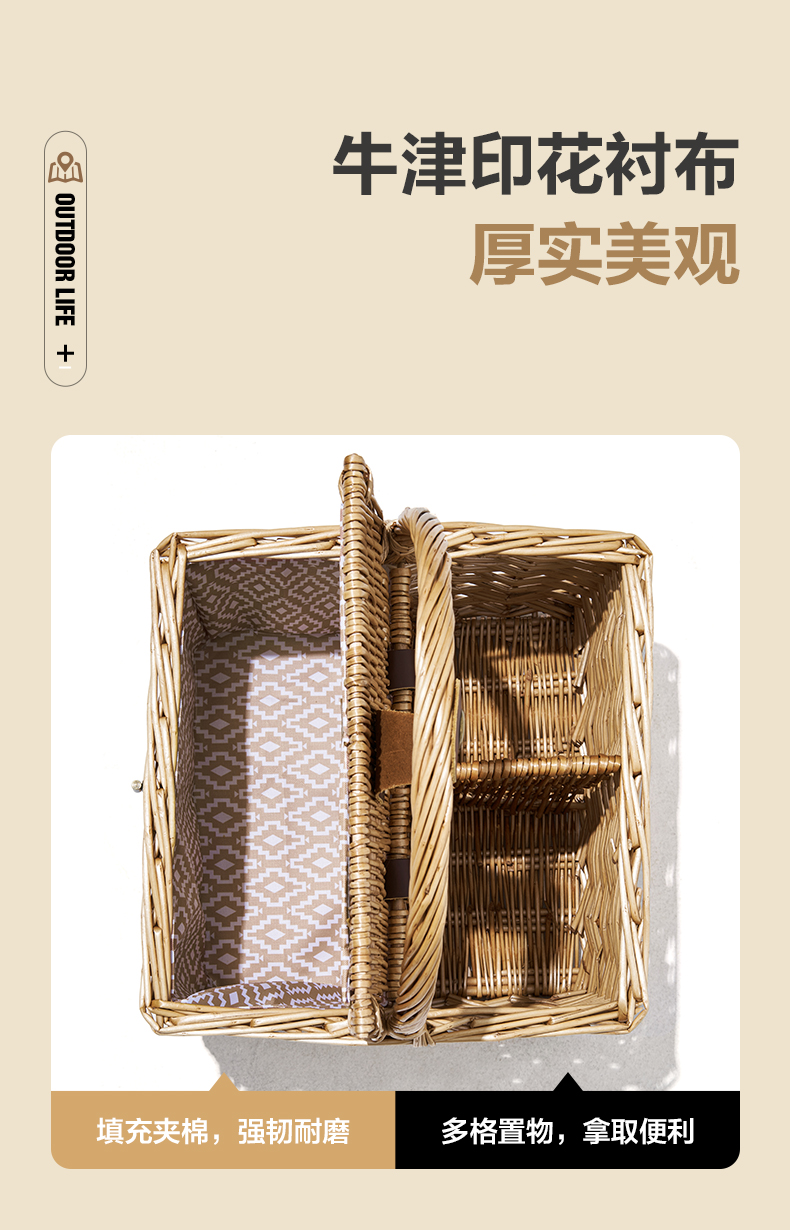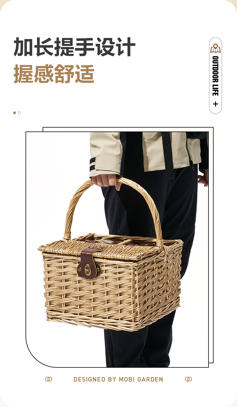 牧高笛(MOBIGARDEN) 户外露营柳编便携手提篮加长提手野餐篮 NX21671110单位·:个 浅柳咖
