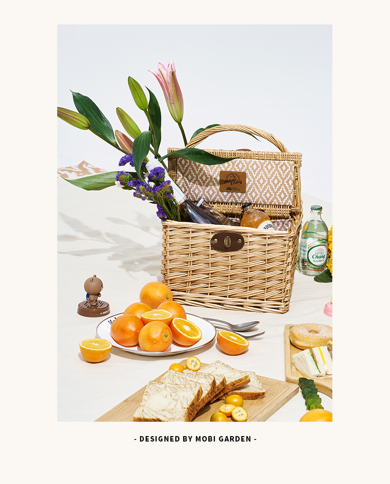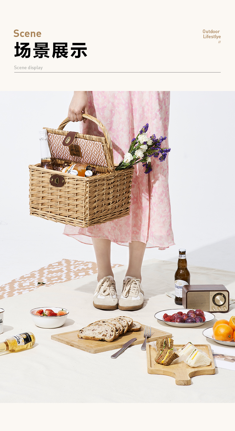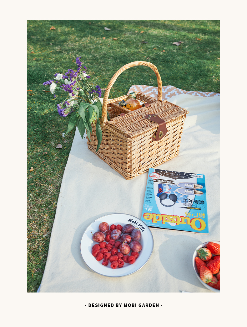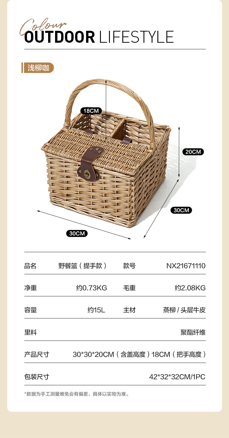 牧高笛(MOBIGARDEN) 户外露营柳编便携手提篮加长提手野餐篮 NX21671110单位·:个 浅柳咖