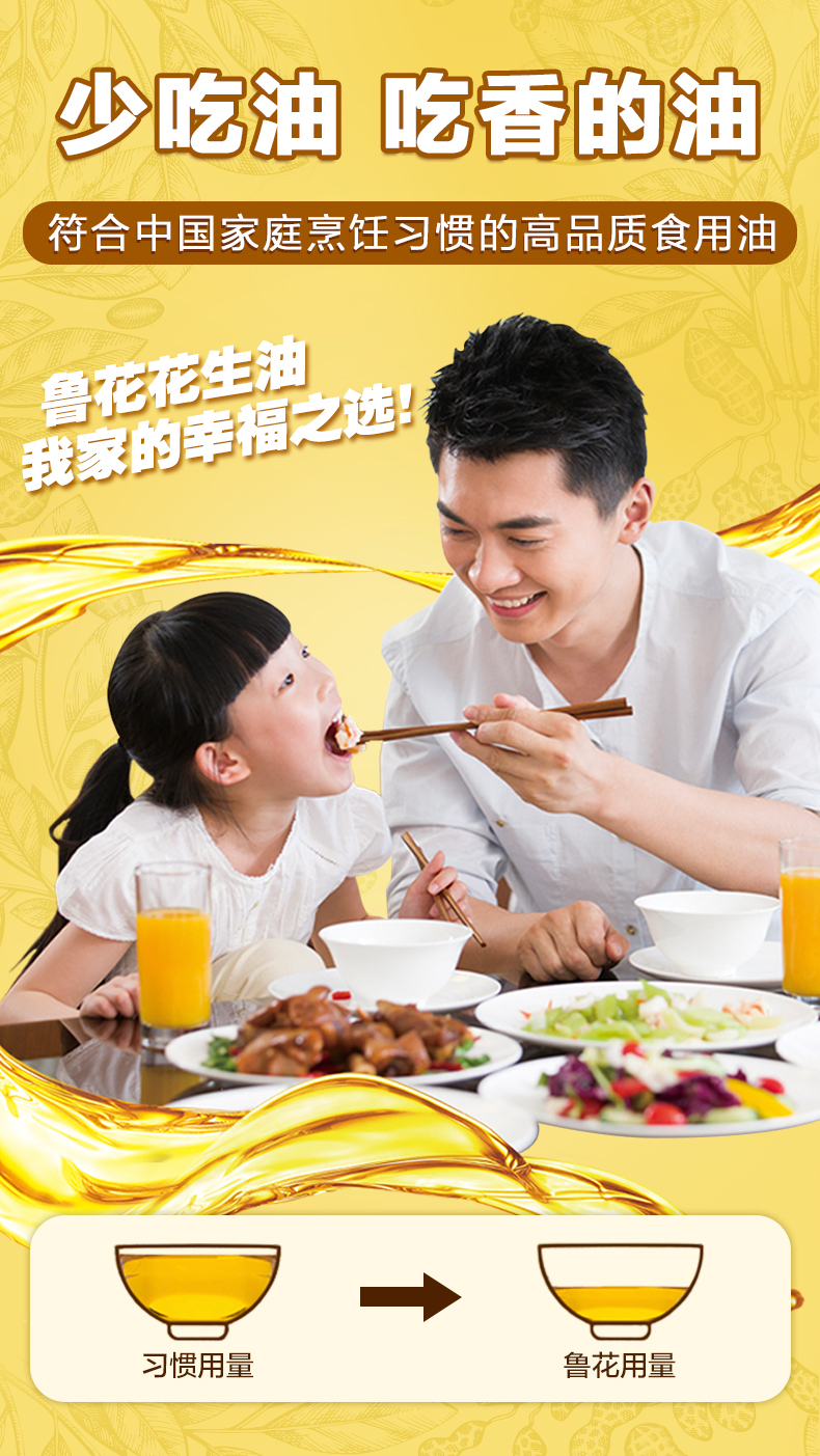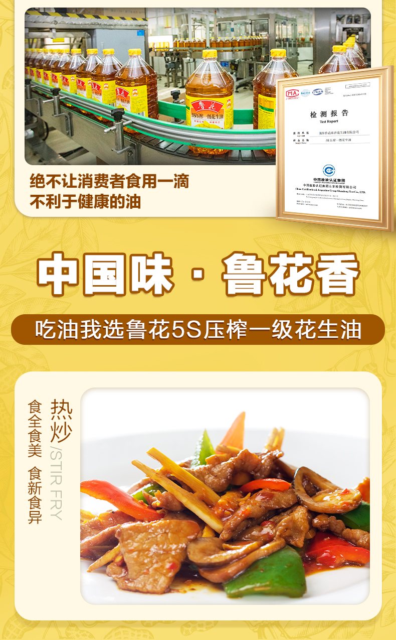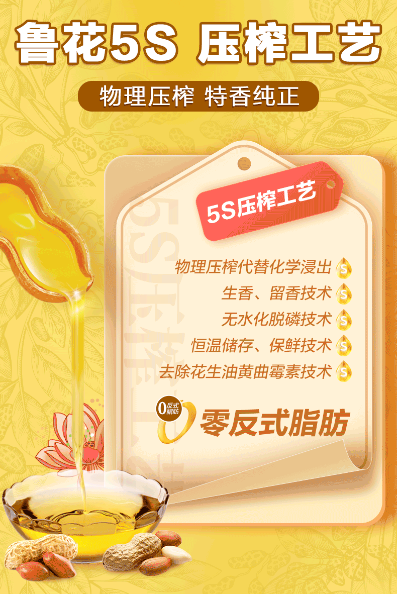 鲁花 5S压榨花生油 1L 物理压榨工艺 香槟黄(单位:桶)
