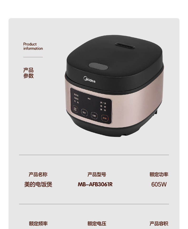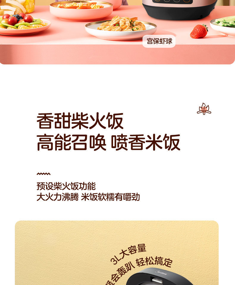 美的(Midea)电饭煲电饭锅 3L容量 AFB3061R(单位:台) 玫瑰红色