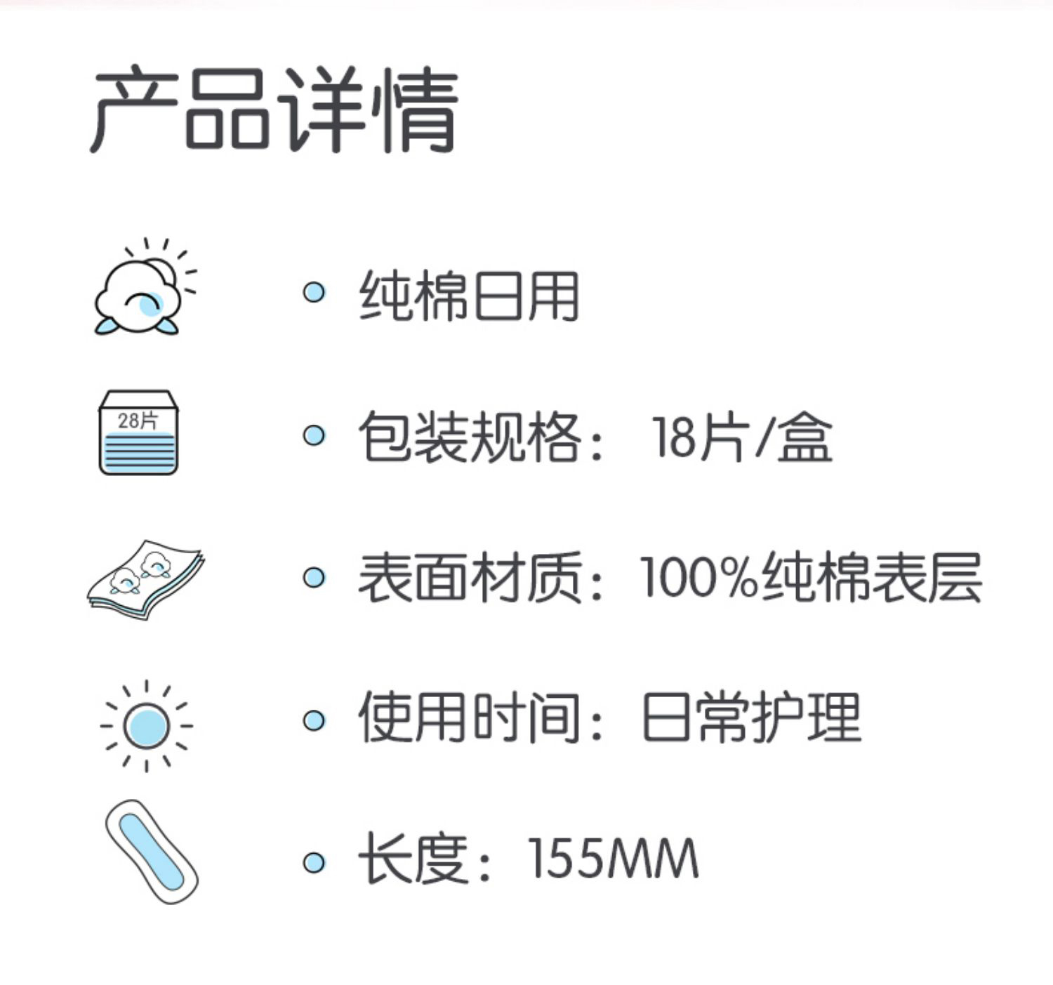 七度空间女生护垫纯棉透气超薄QDBN618(18片*5包装) 白色