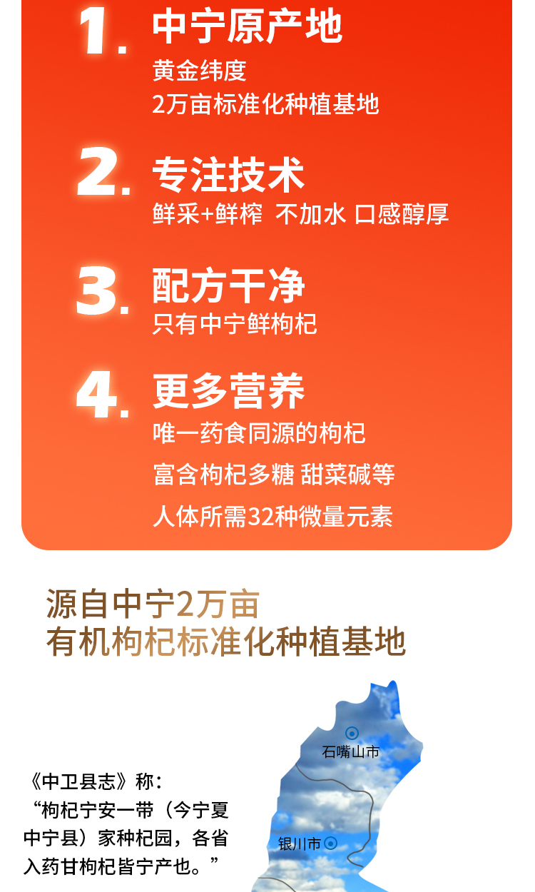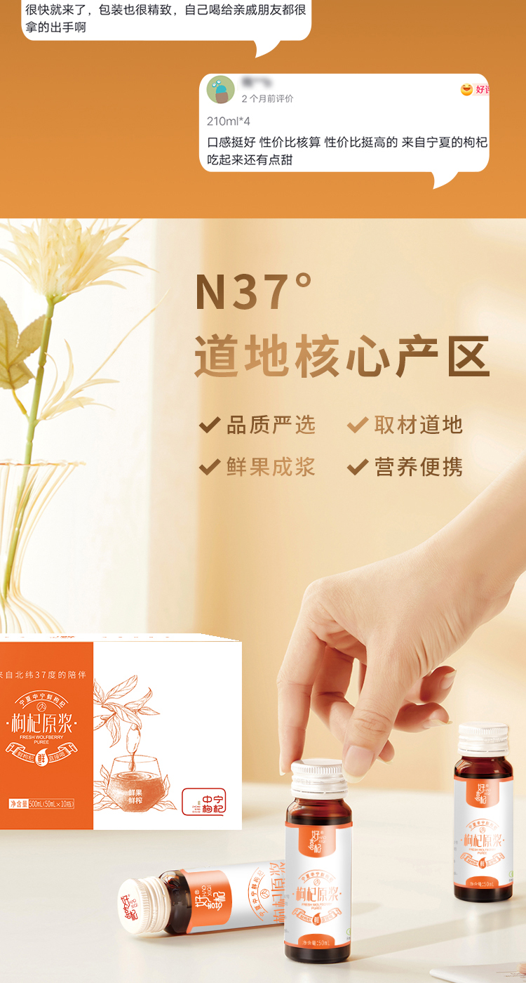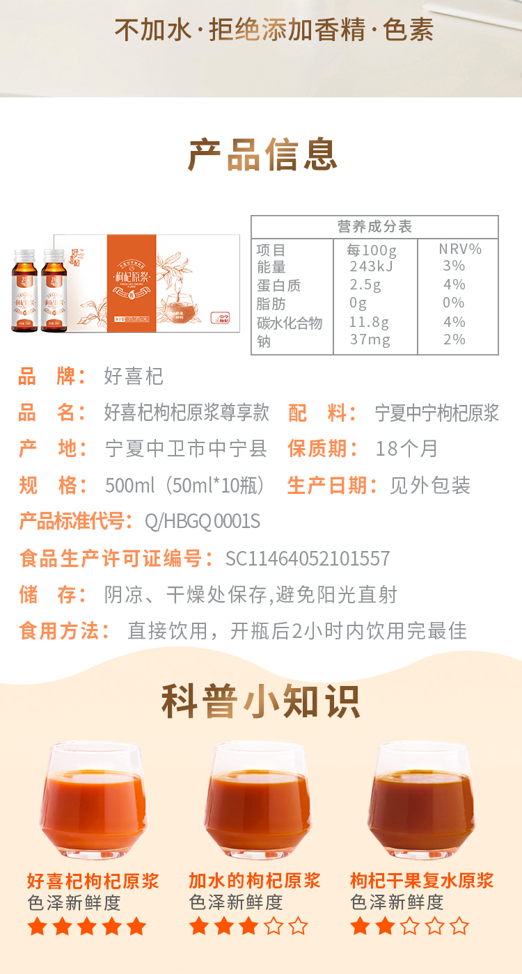 好喜杞500ml(50ml*10瓶)中宁枸杞原浆,鲜果鲜榨无任何添加 尊享系列
