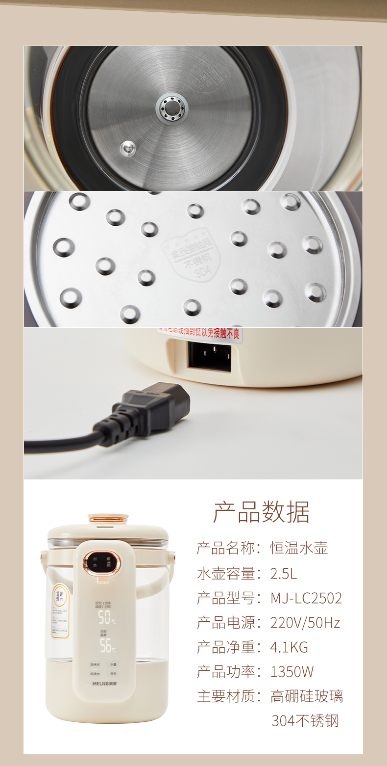 美菱(MELNG)恒温电水瓶电水壶 2.5L MJ-LC2502(单位:台) 象牙色