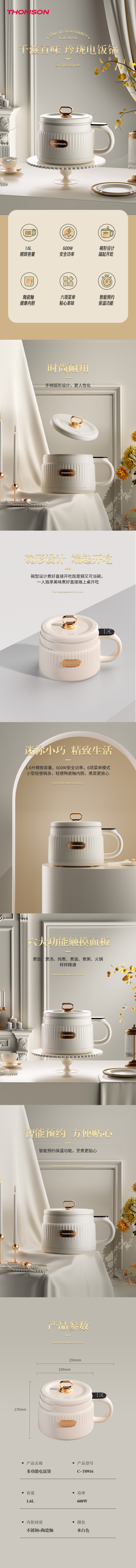 多汤姆逊(THOMSON)功能电饭煲C-T0916(单位:台) 白色