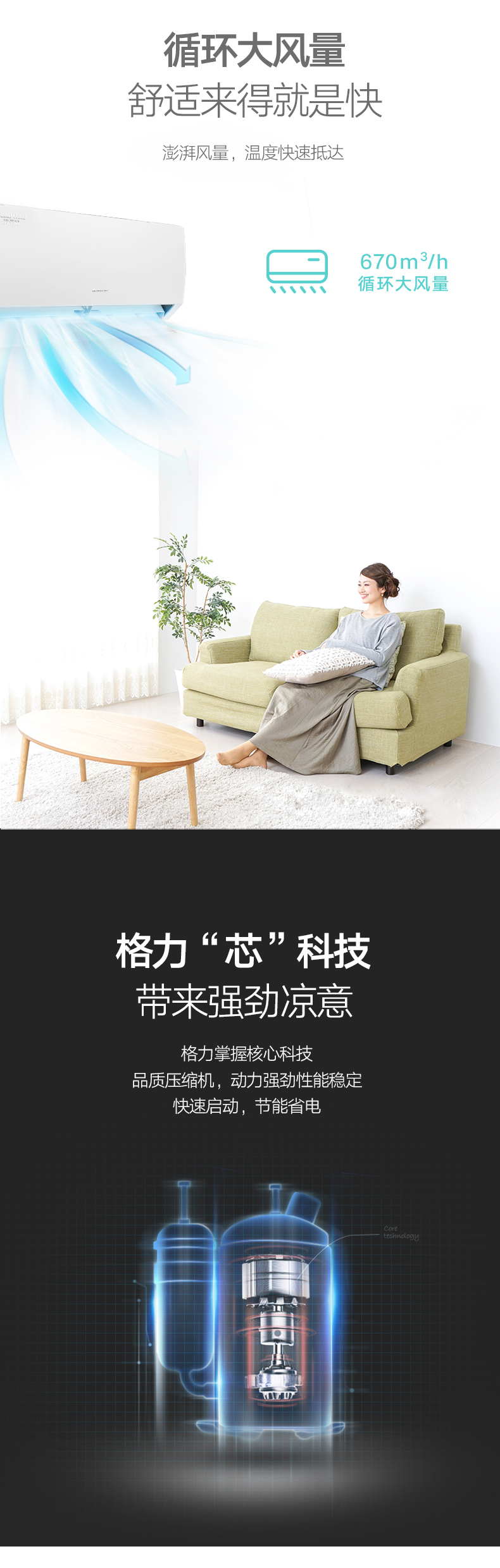 格力(GREE)KFR-26GW/(26563)FNhAd-B1JY01 壁挂式空调冷暖型(大1匹) 白色