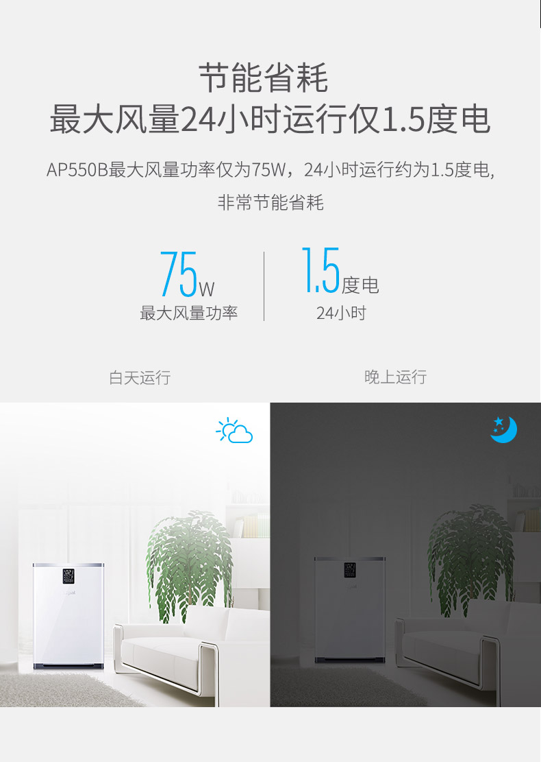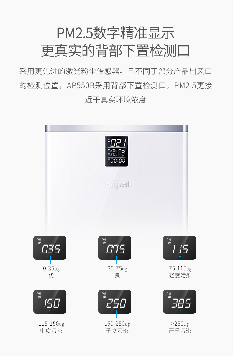 爱宝乐(airpal) 空气净化器家用除甲醛除PM2.5雾霾 AP550B多场合适用 白色