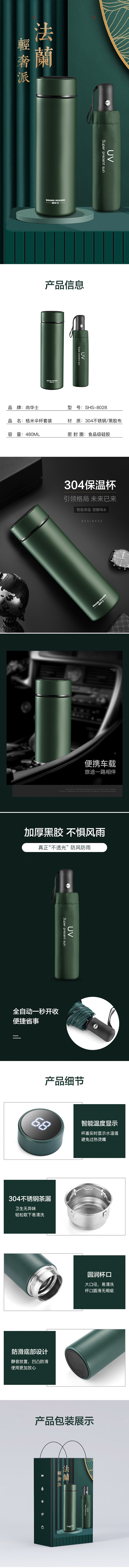 尚华士(SHANG HUASHI)格米伞杯套装 智能保温杯+自动伞 SHS-8028绿色(单位:套) 军绿色