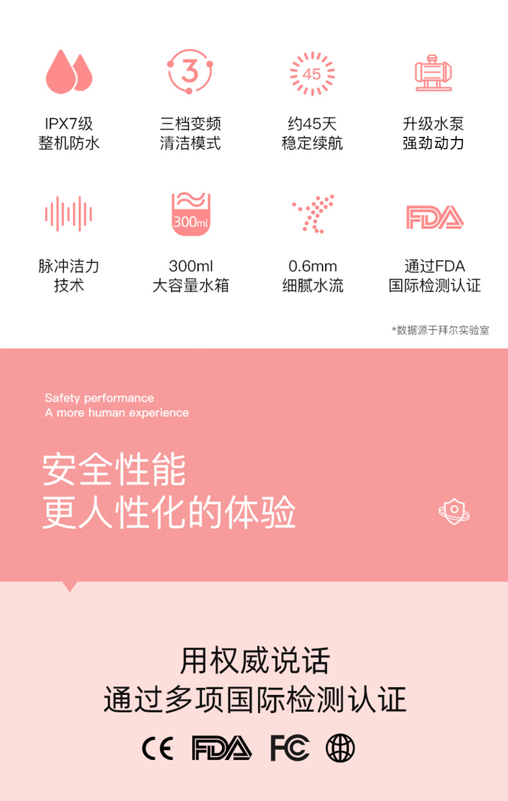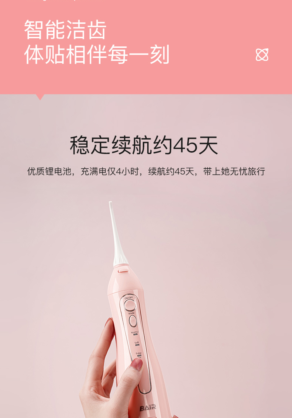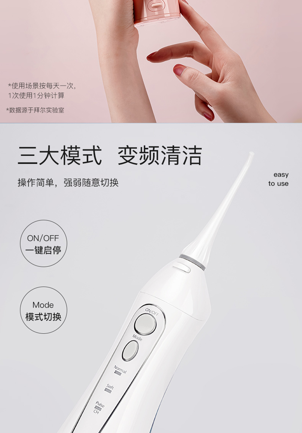 拜尔 拜尔电动冲牙器M3PLUS(配5个喷嘴300ML容量水箱)(单位:个) 白色
