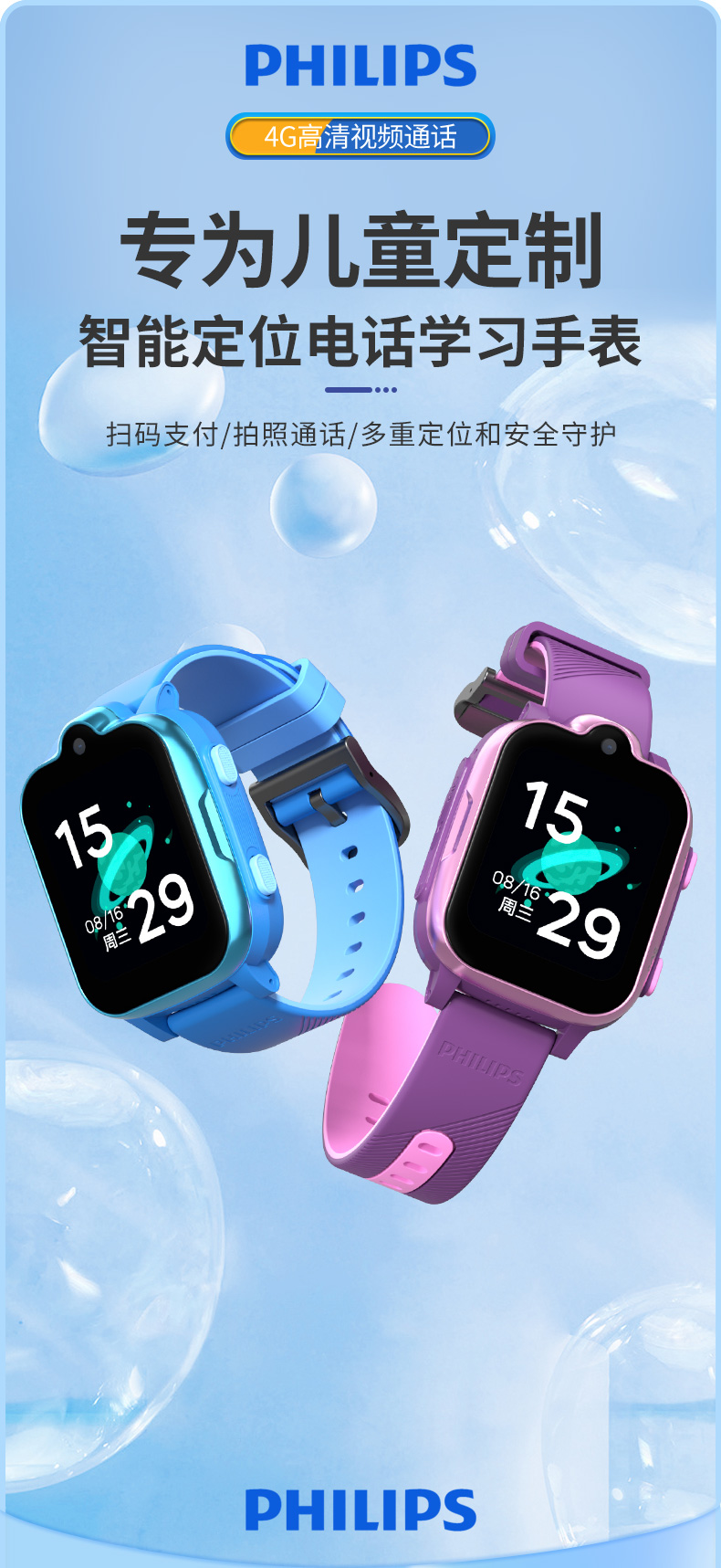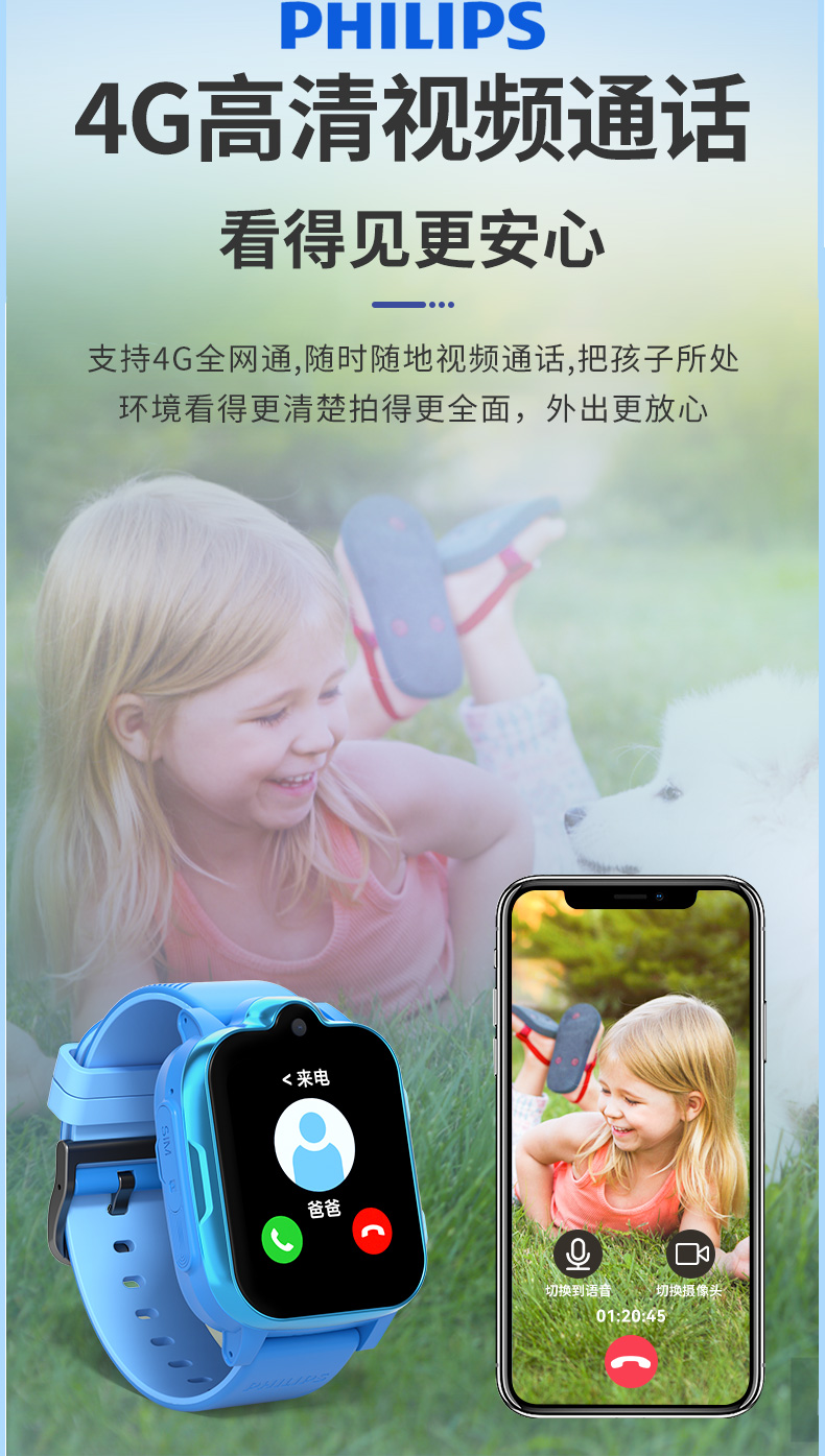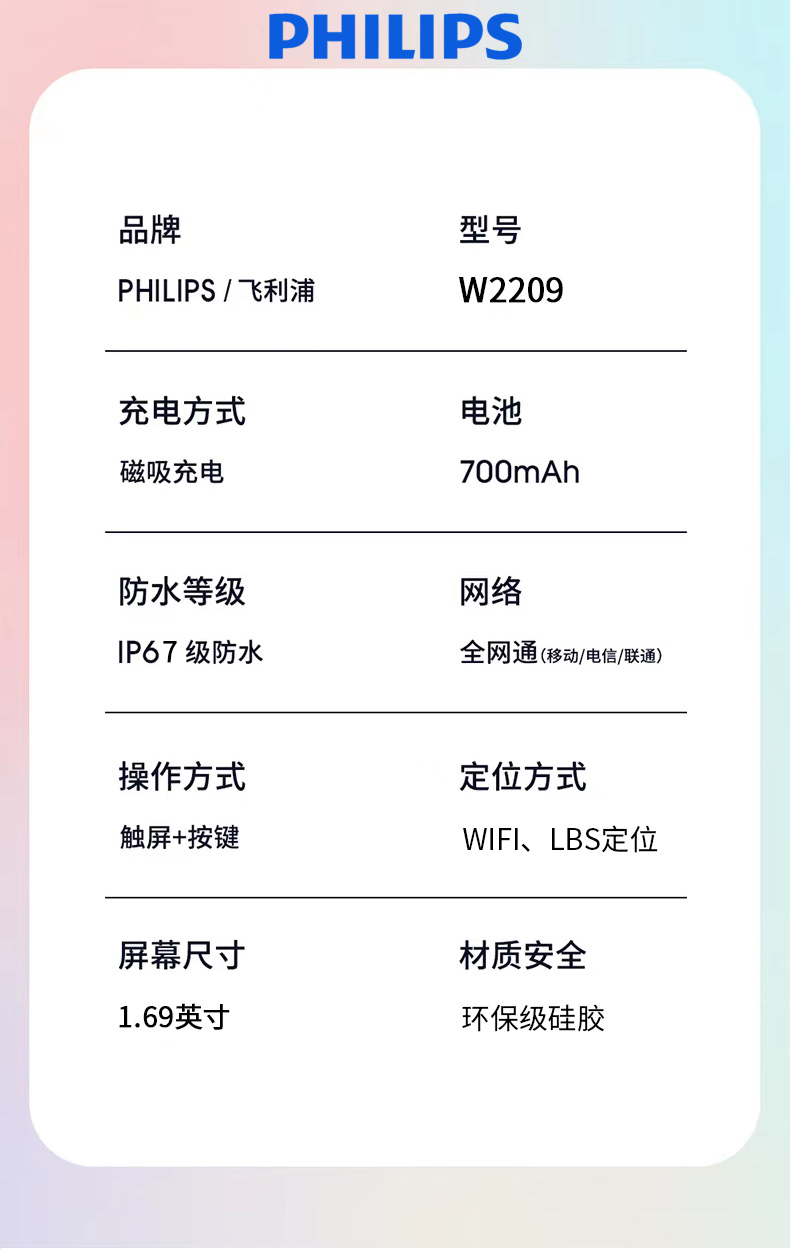 飞利浦电话手表长续航智能儿童手表 W2209(单位:个) 粉色