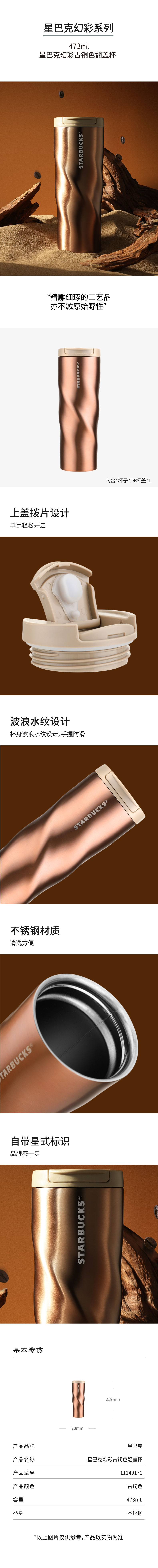 星巴克幻彩翻盖杯古铜色473ml(单位:个) 古铜色