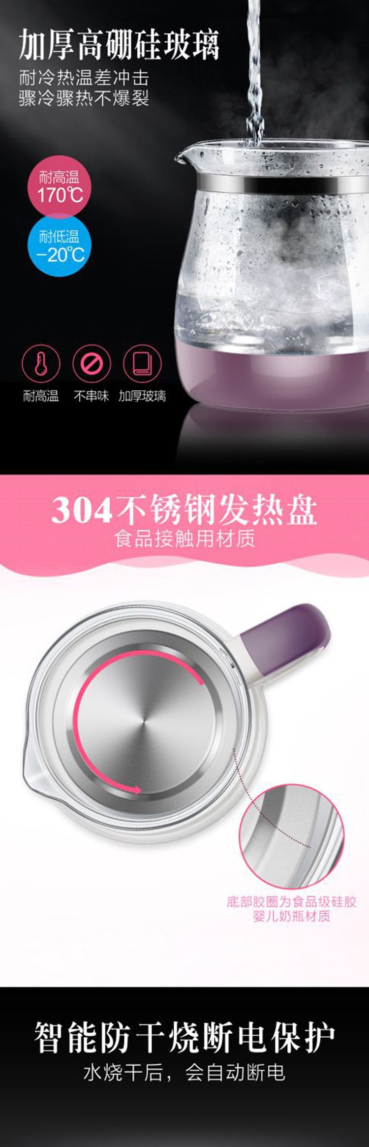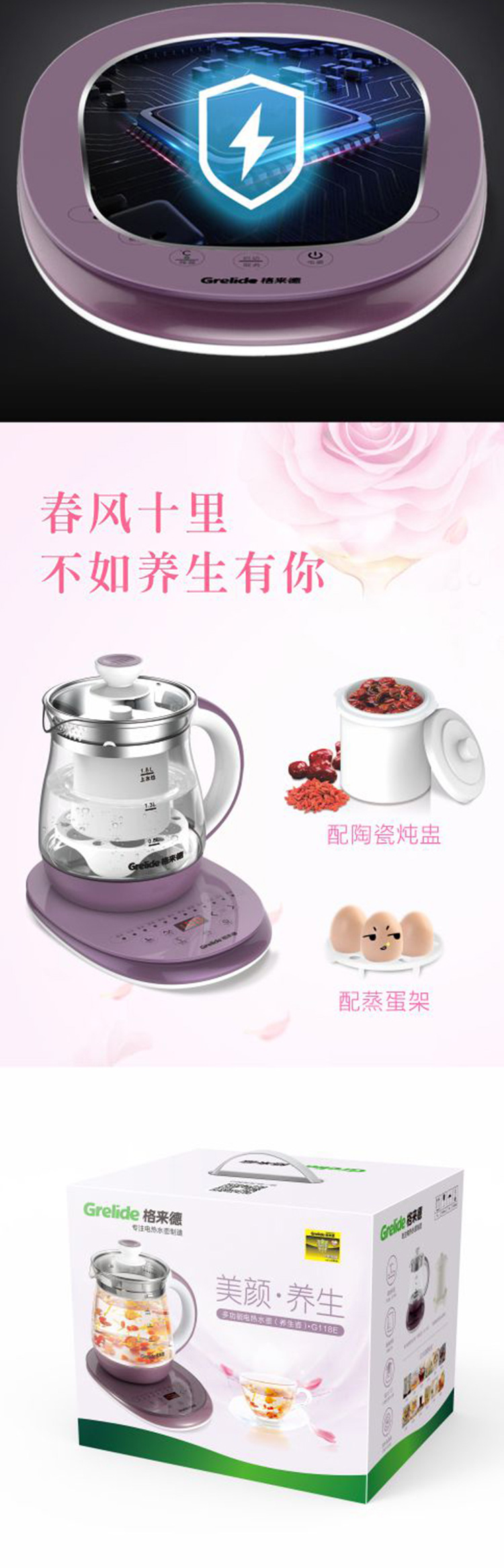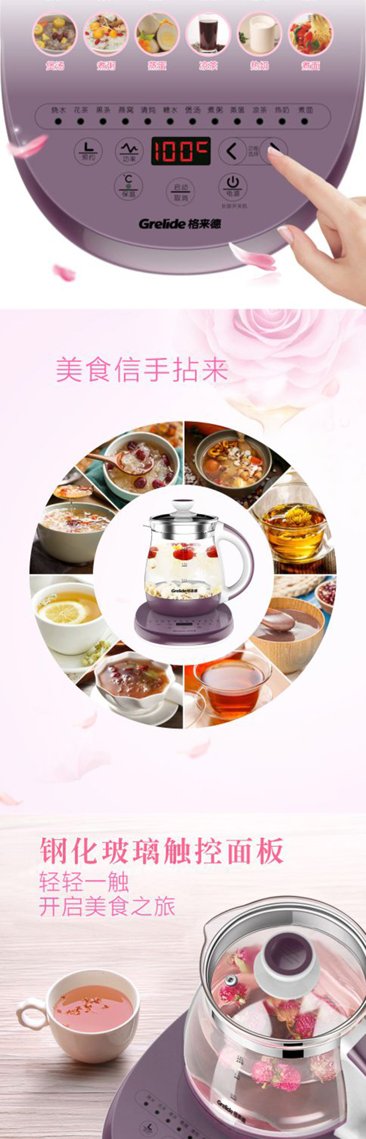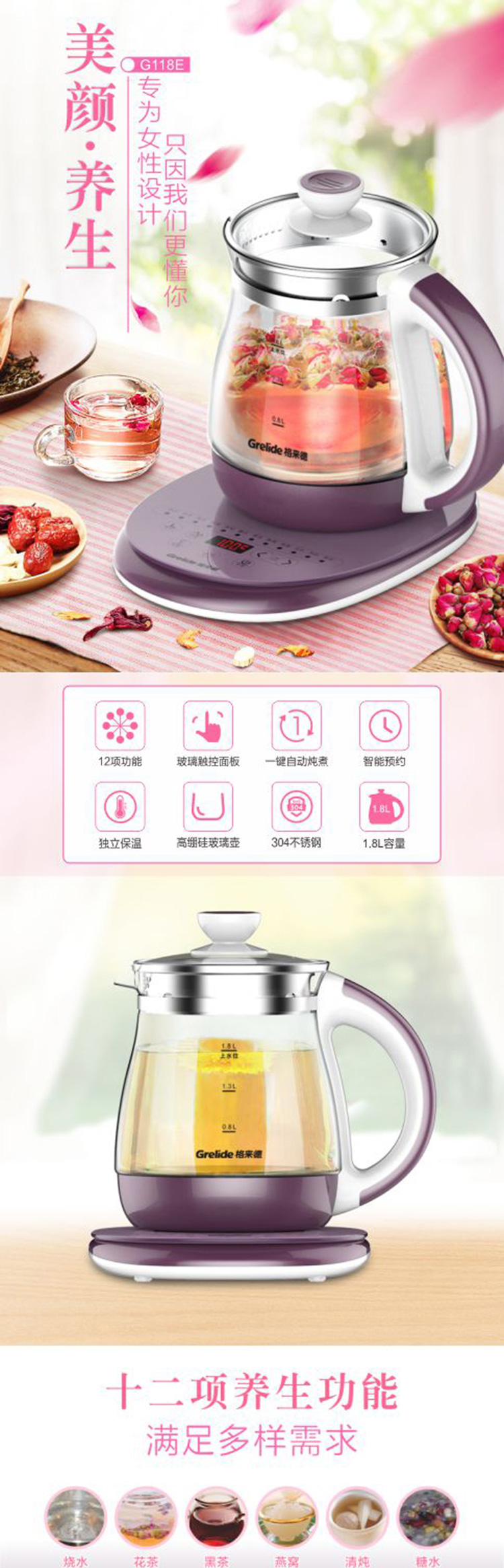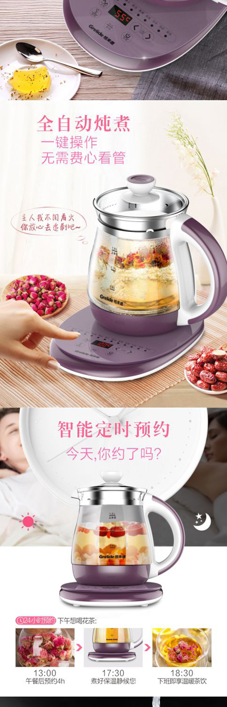 格来德(Grelide) 养生壶12大功能烧水壶1.8L大容量花茶智能煮茶器G118E(单位:个) 香芋紫