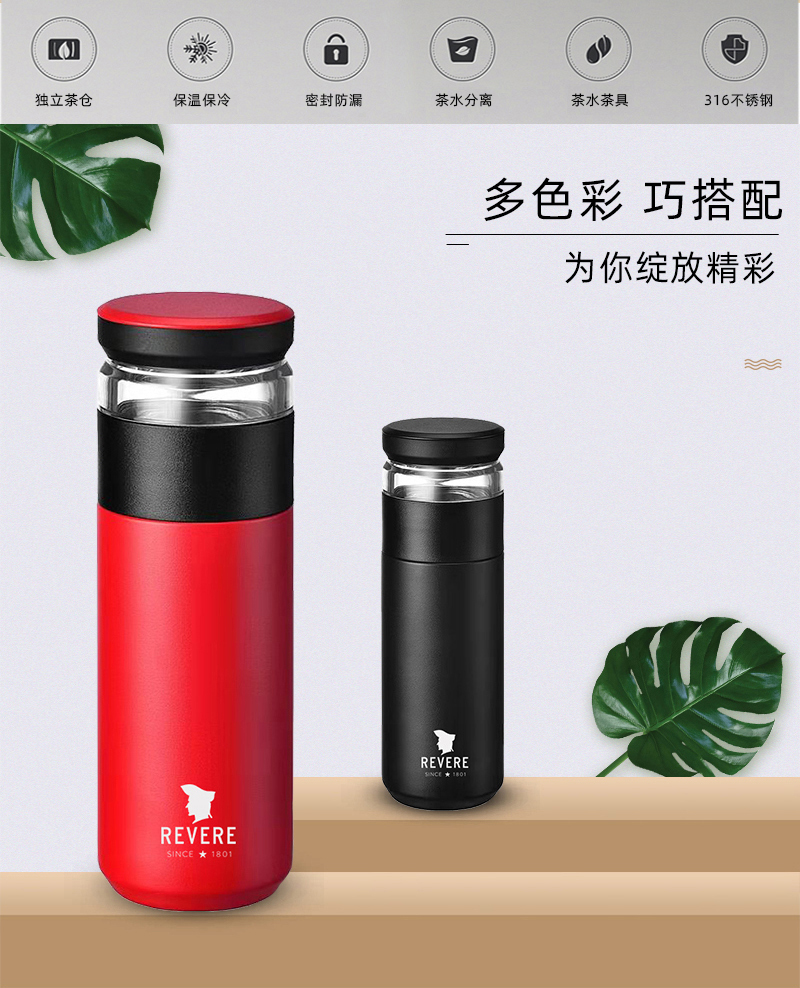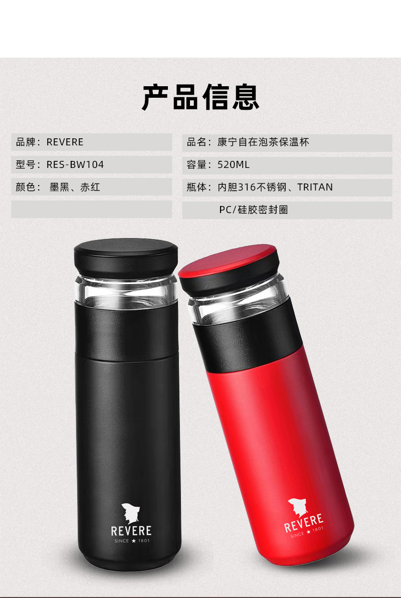 康宁Revere 自在泡茶保温杯 RES-BW104 红色