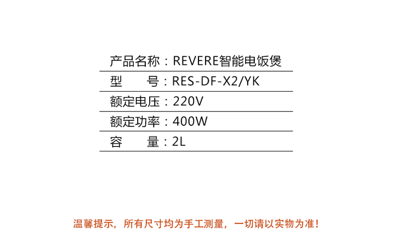康宁Revere 智能电饭煲2L RES-DF-X2 /YK 白色