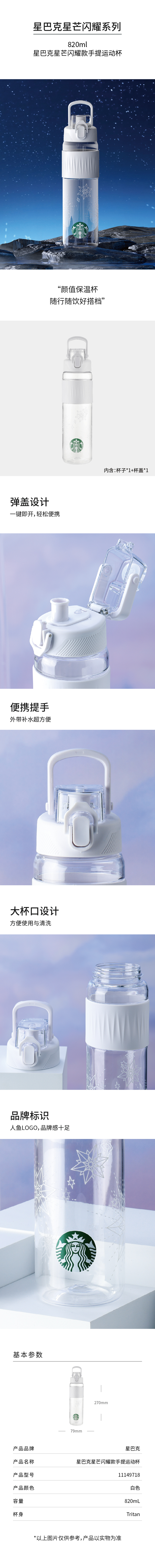 星巴克星芒闪耀款手提运动杯820mL(单位:瓶) 星芒