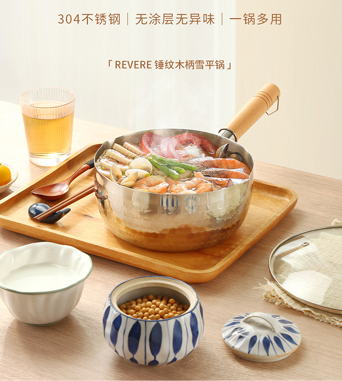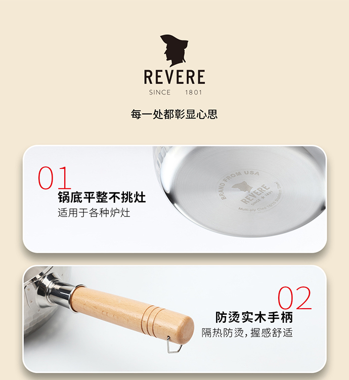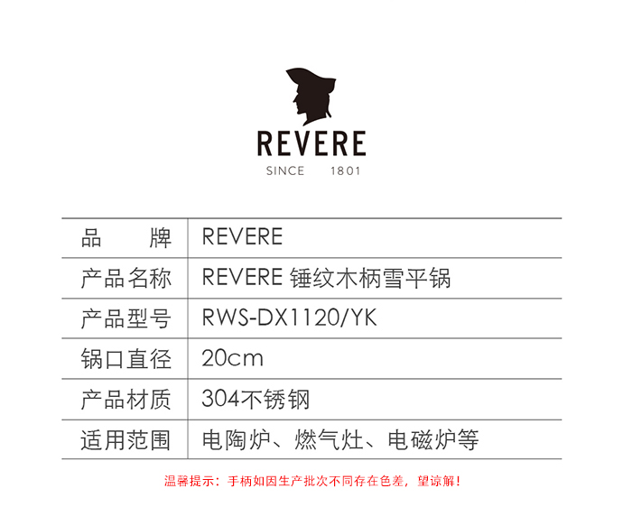 康宁Revere 锤纹木柄雪平锅 20CM RWS-DX1120/YK 不锈钢色