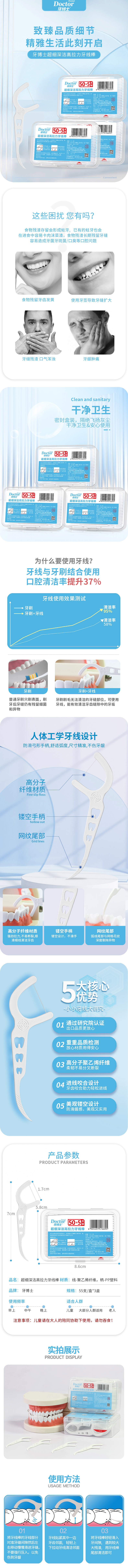 牙博士细滑圆线牙线棒55支*3盒清洁齿缝牙签牙线棒 55支*3盒