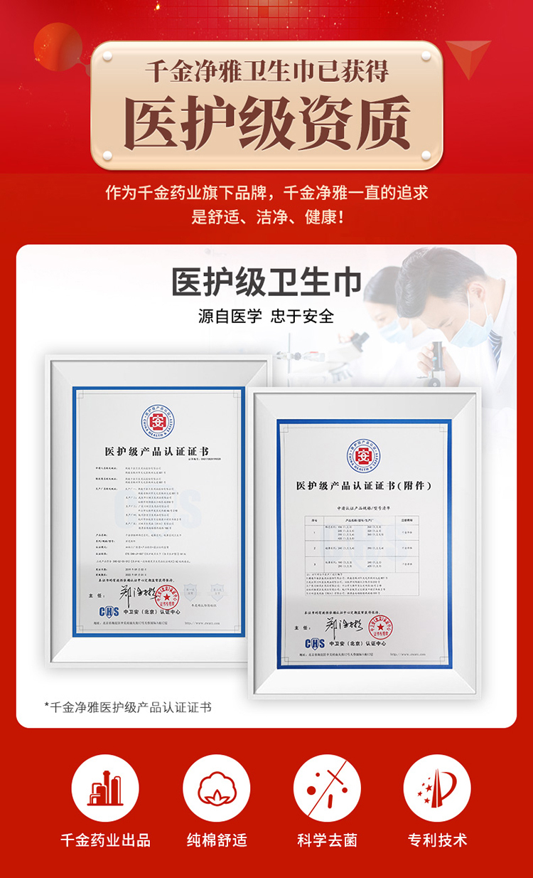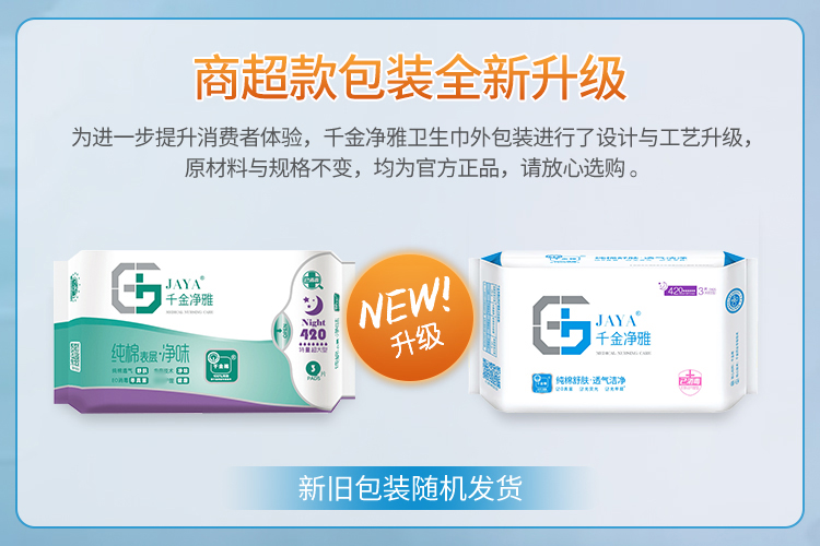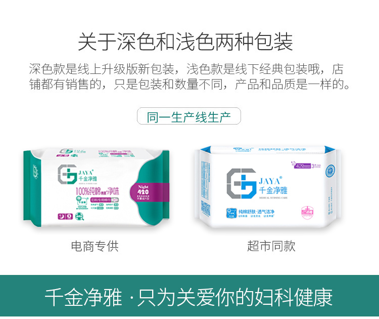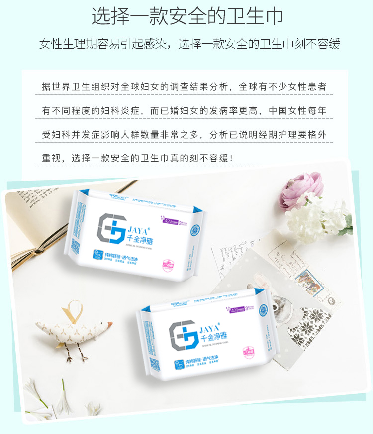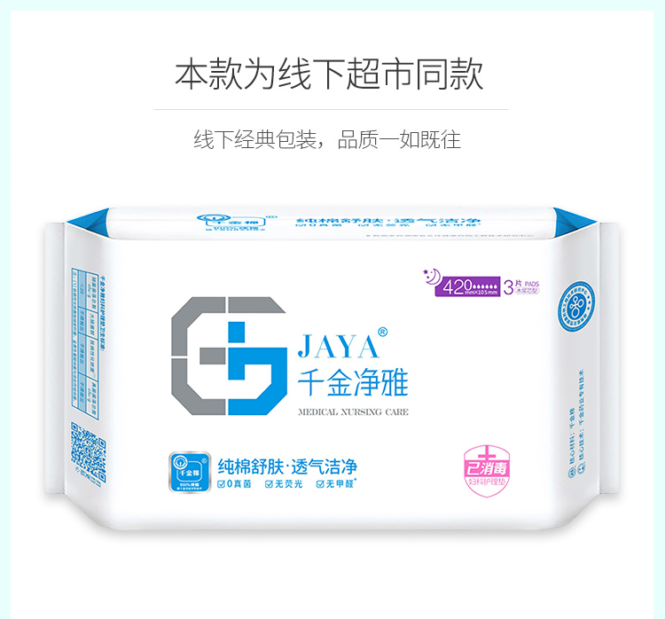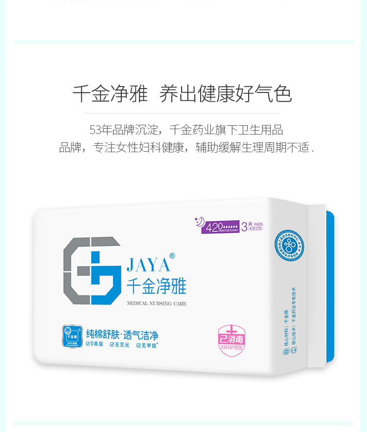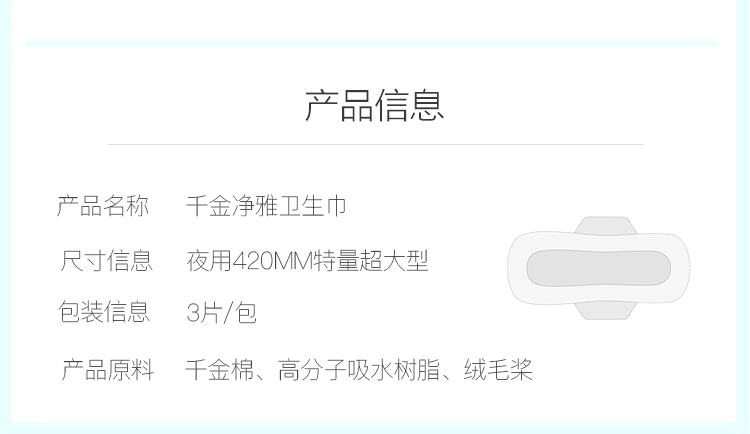千金净雅妇科专用棉巾卫生巾420特量超大型3片装*1包 白色