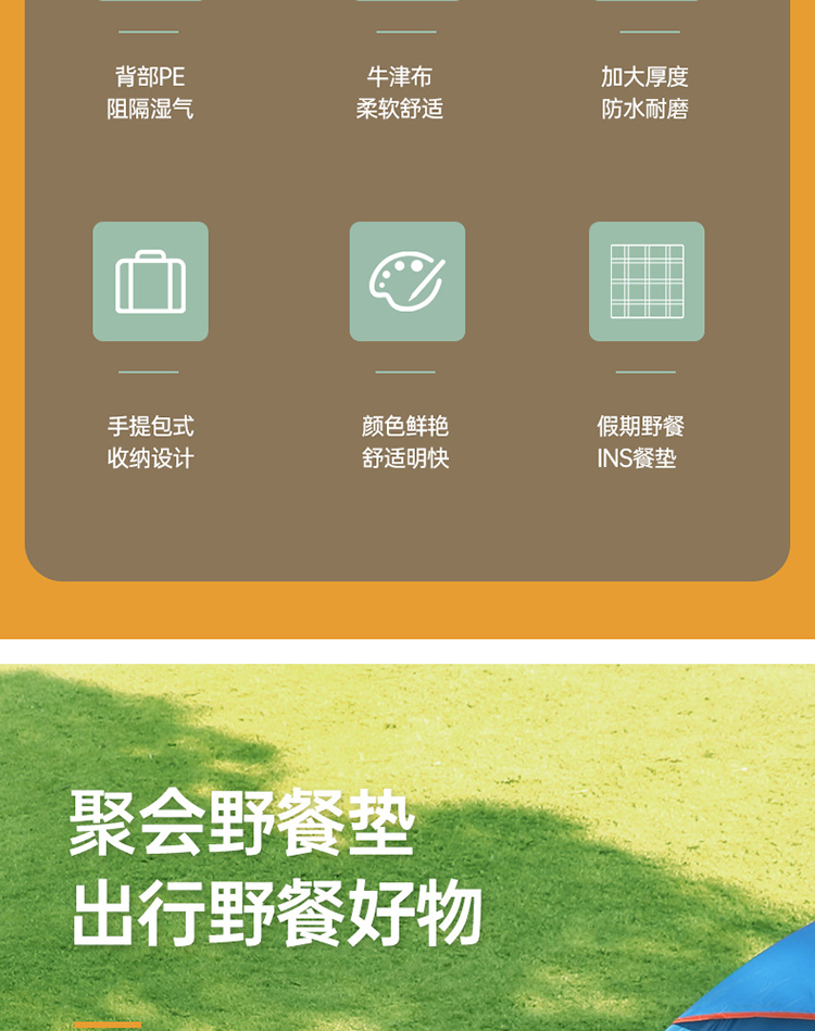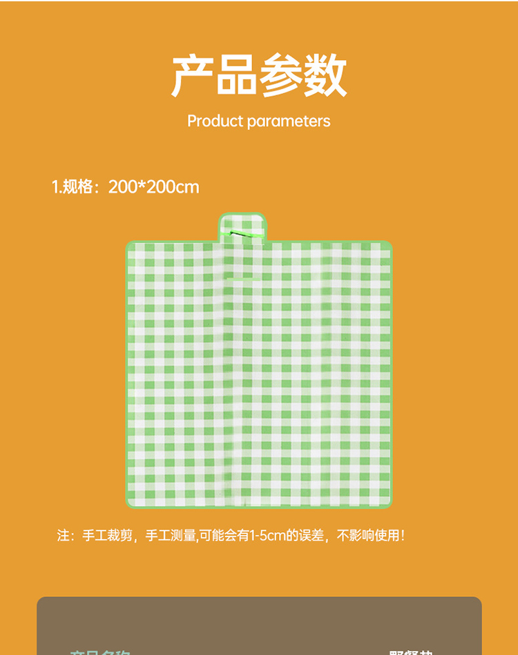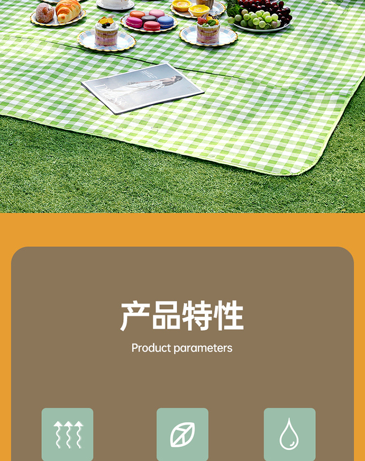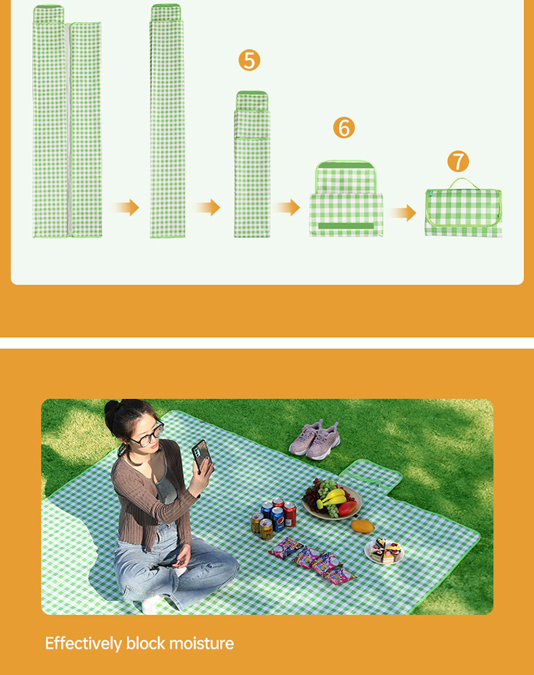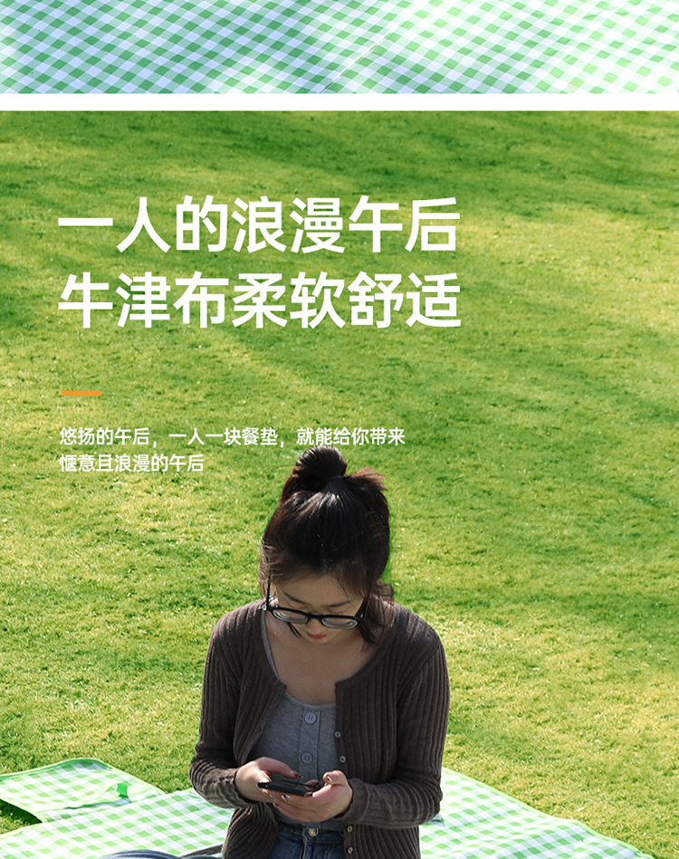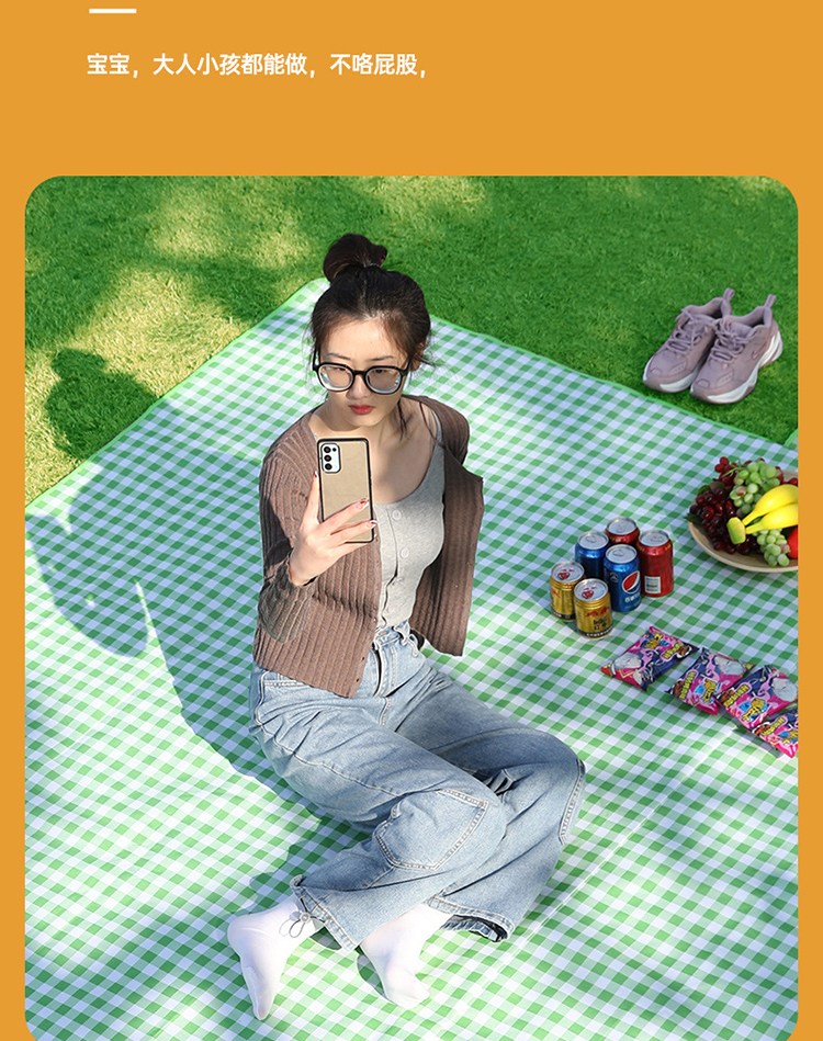 FTLY飞图乐牛津布防水野餐垫绿白格大号YCD0202/个 绿白格