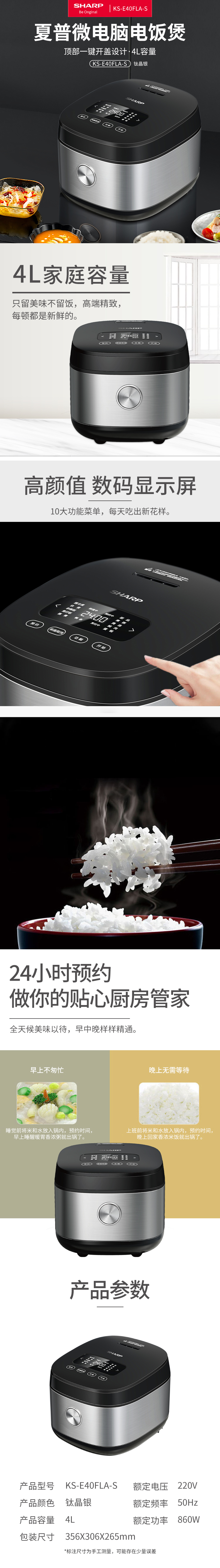 夏普微电脑电饭煲 KS-E40FLA-S(单位:台) 钛晶银