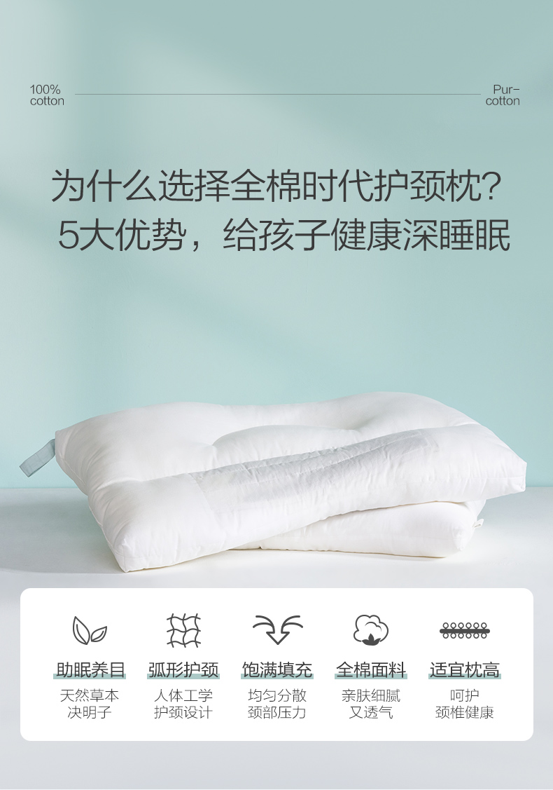 全棉时代成人枕芯 48cm×74cm 成人全棉决明子护颈枕 1件装 白色