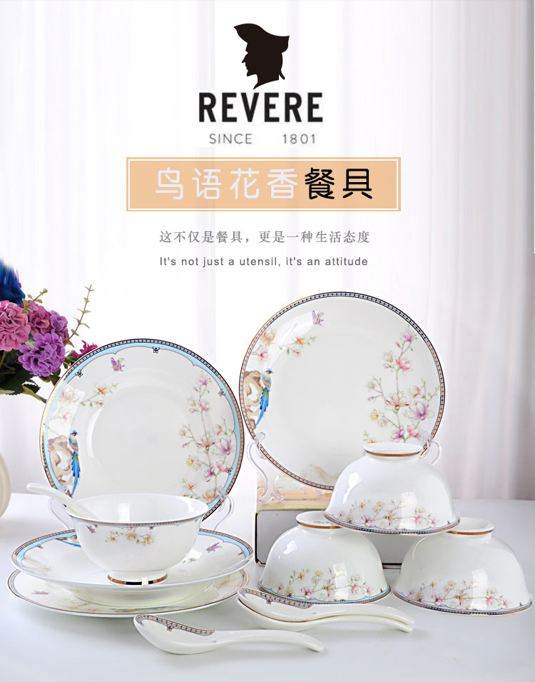 康宁Revere 鸟语花香餐具12件套RWU-CJ12BF-YK 白色