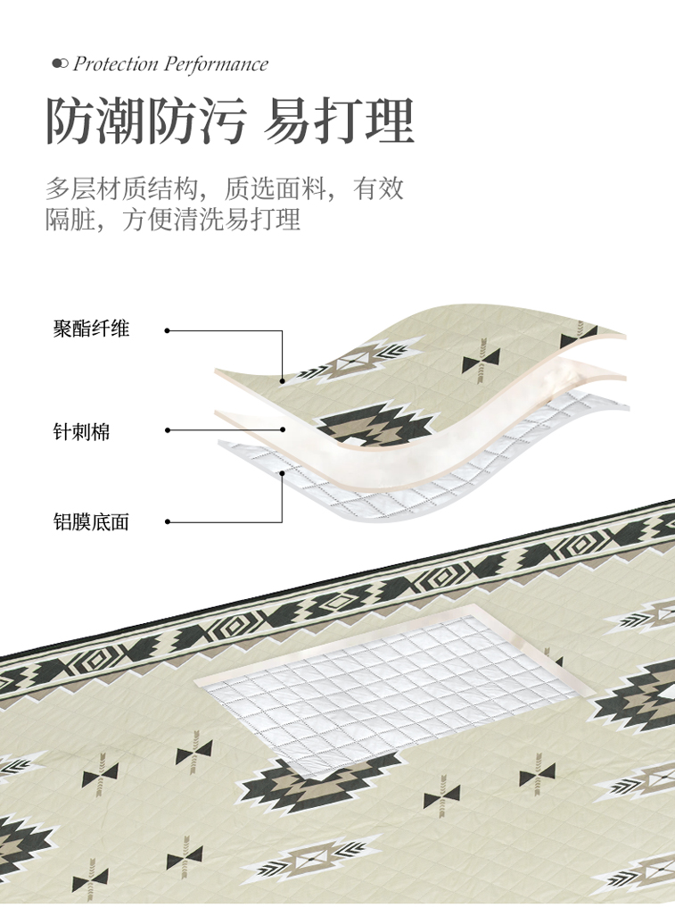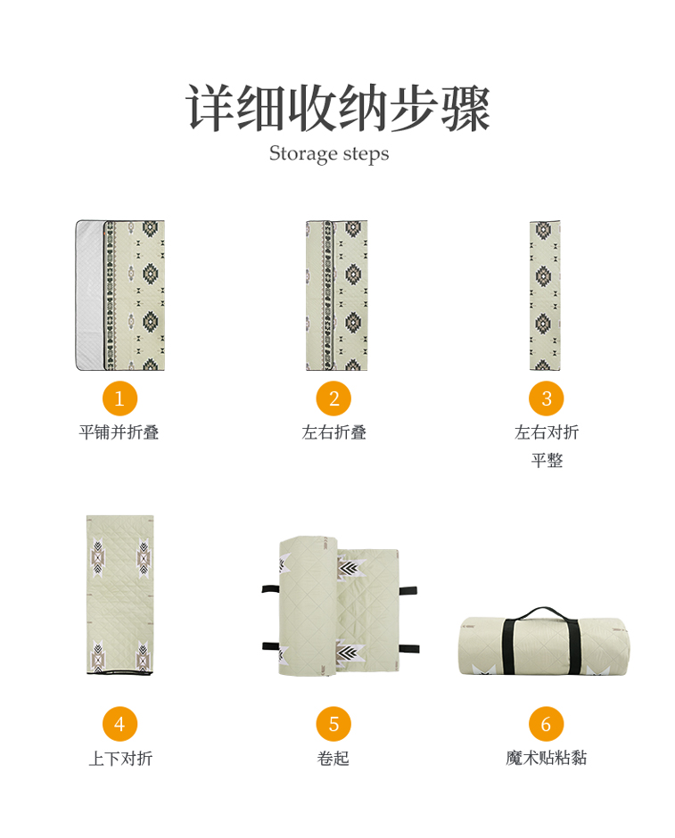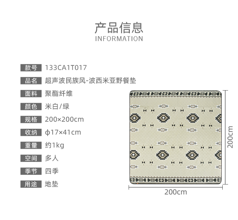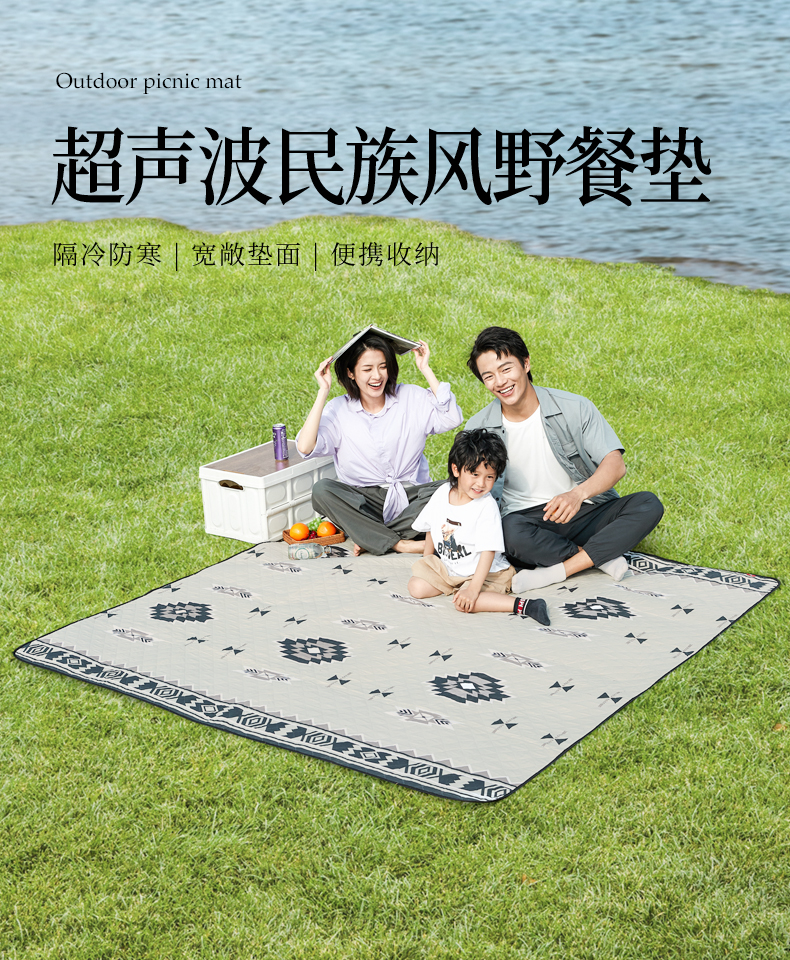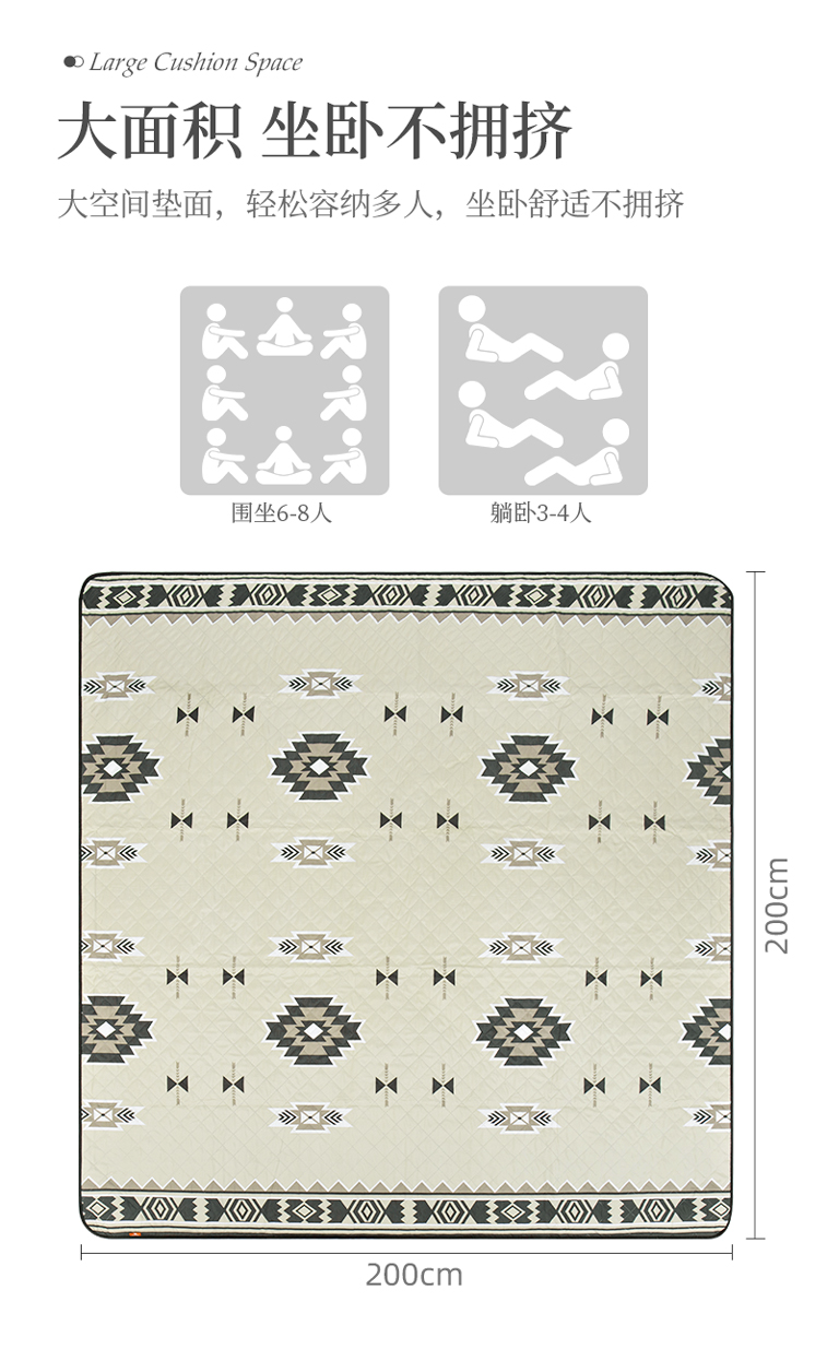 骆驼(CAMEL) 户外民族风野餐垫加厚防水露营野炊坐垫便携睡垫野营防潮垫子 133CA1T017 象牙色 米白/绿
