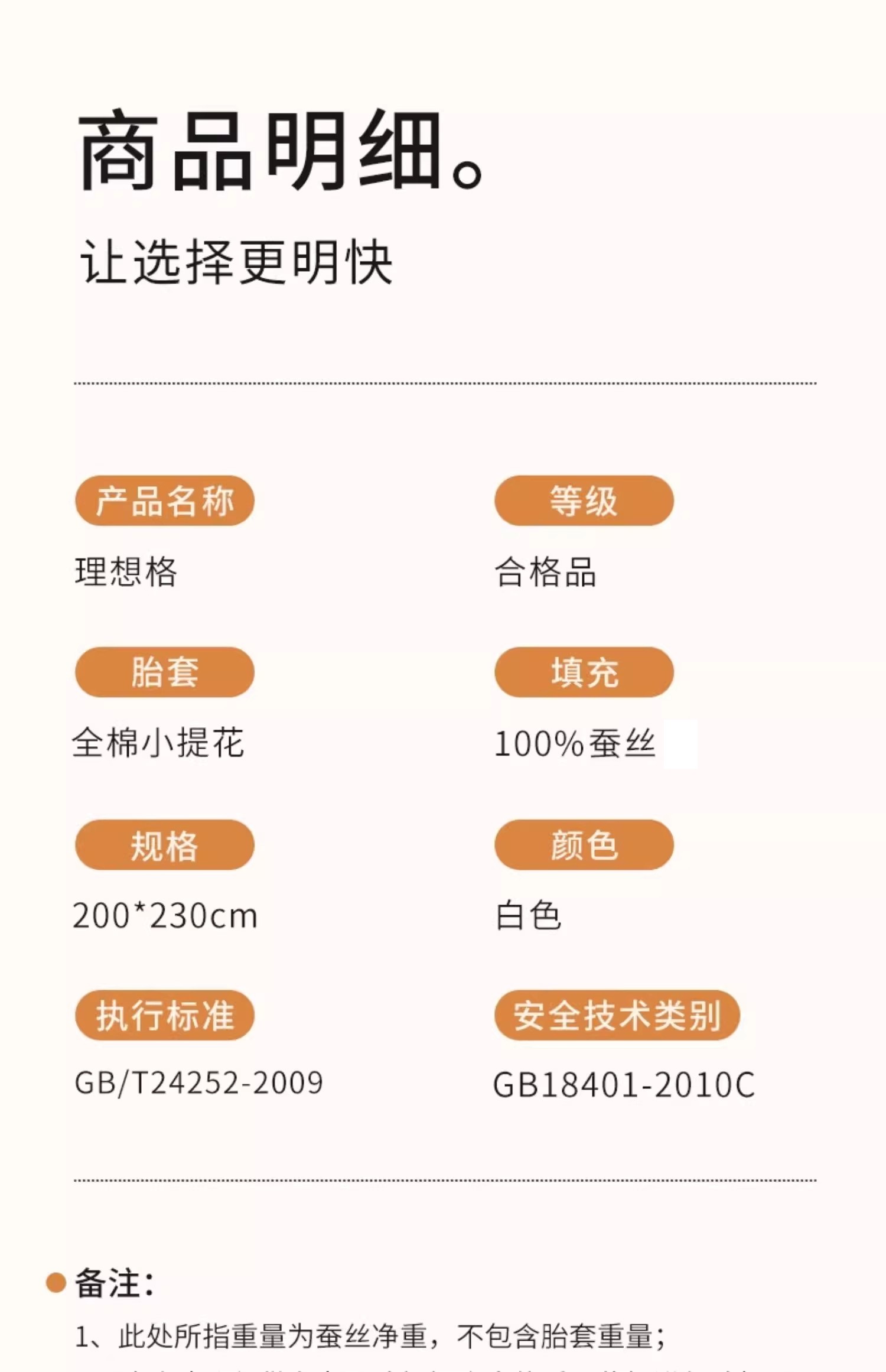 蚕花娘娘100%蚕丝被200*230cm理想格(单位:床) 本白色 理想格500g