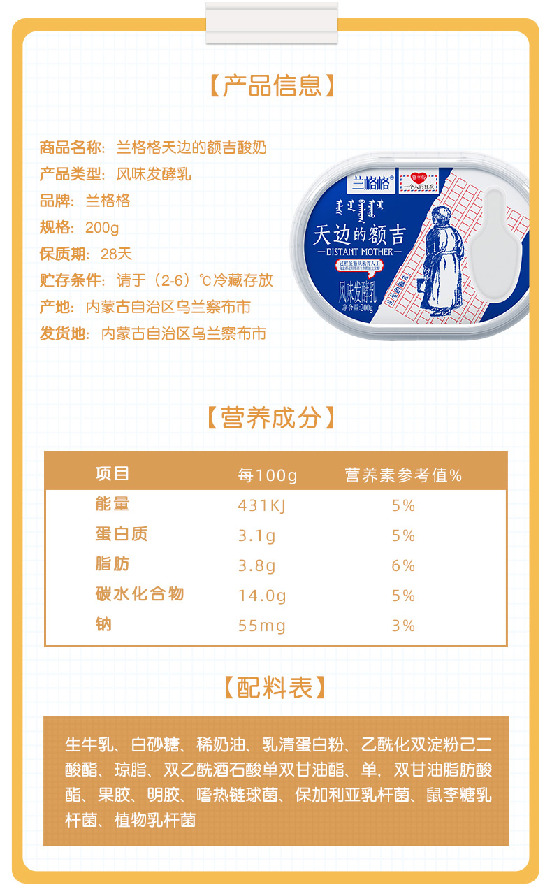 兰格格天边的额吉200g*8(单位:盒)+8袋谷物包(15g) 白色