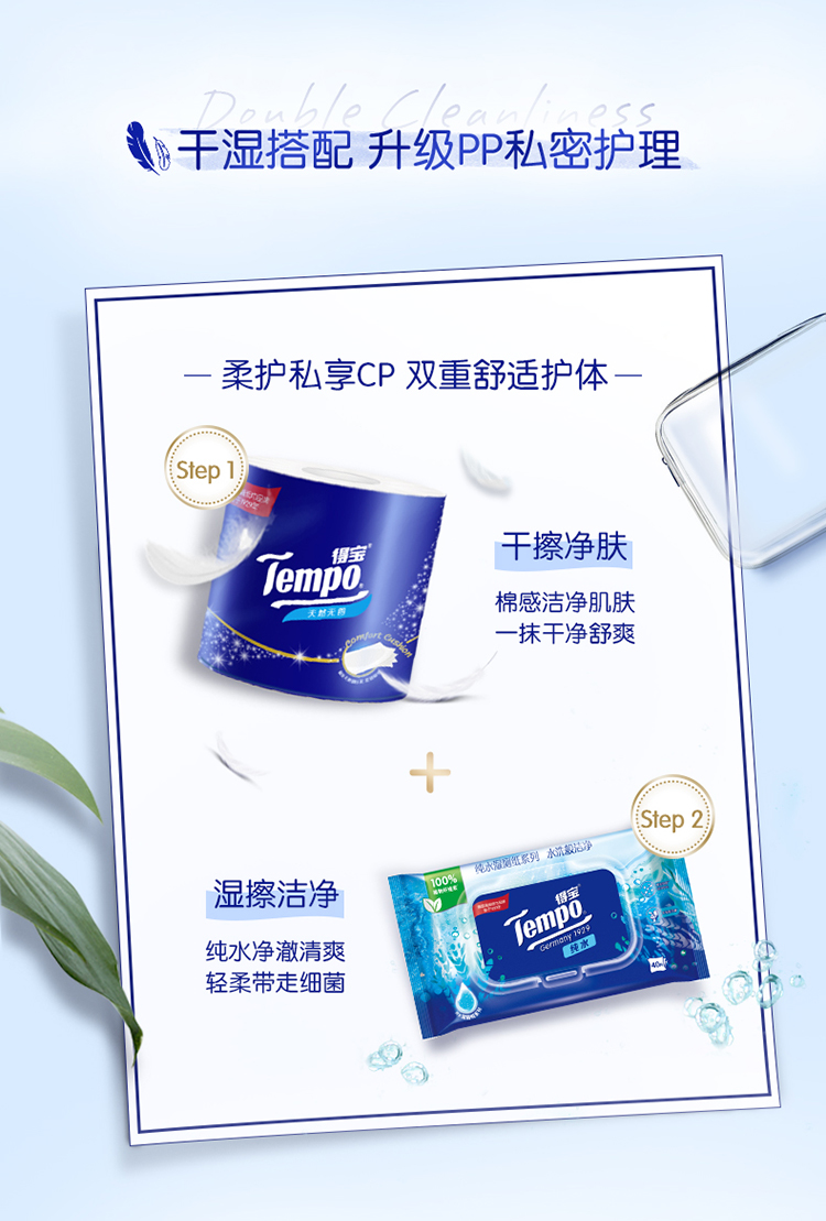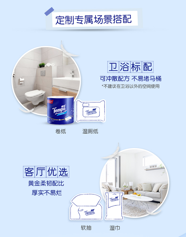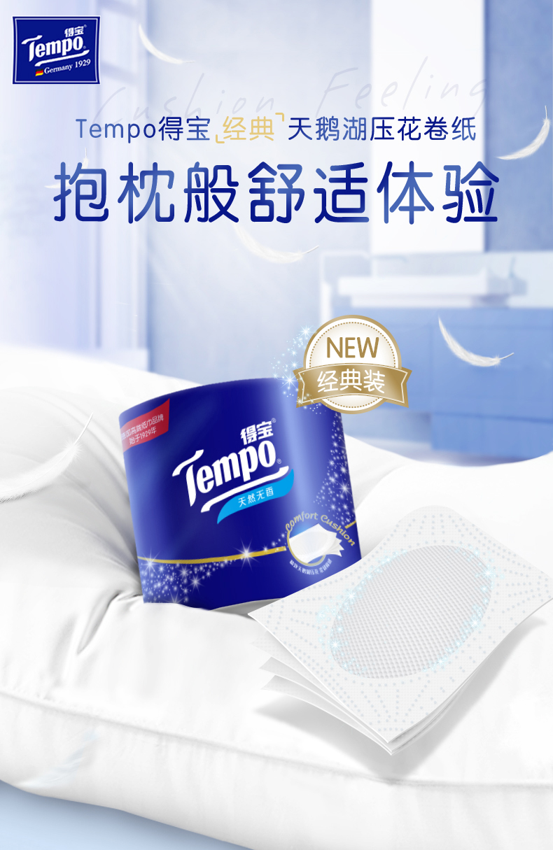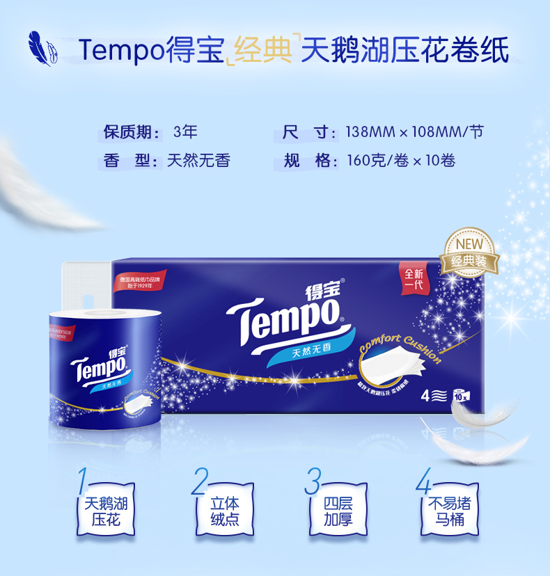 得宝(TEMPO)卷纸无味4层160g*10卷 T4680-10E-T(单位:提) 蓝色