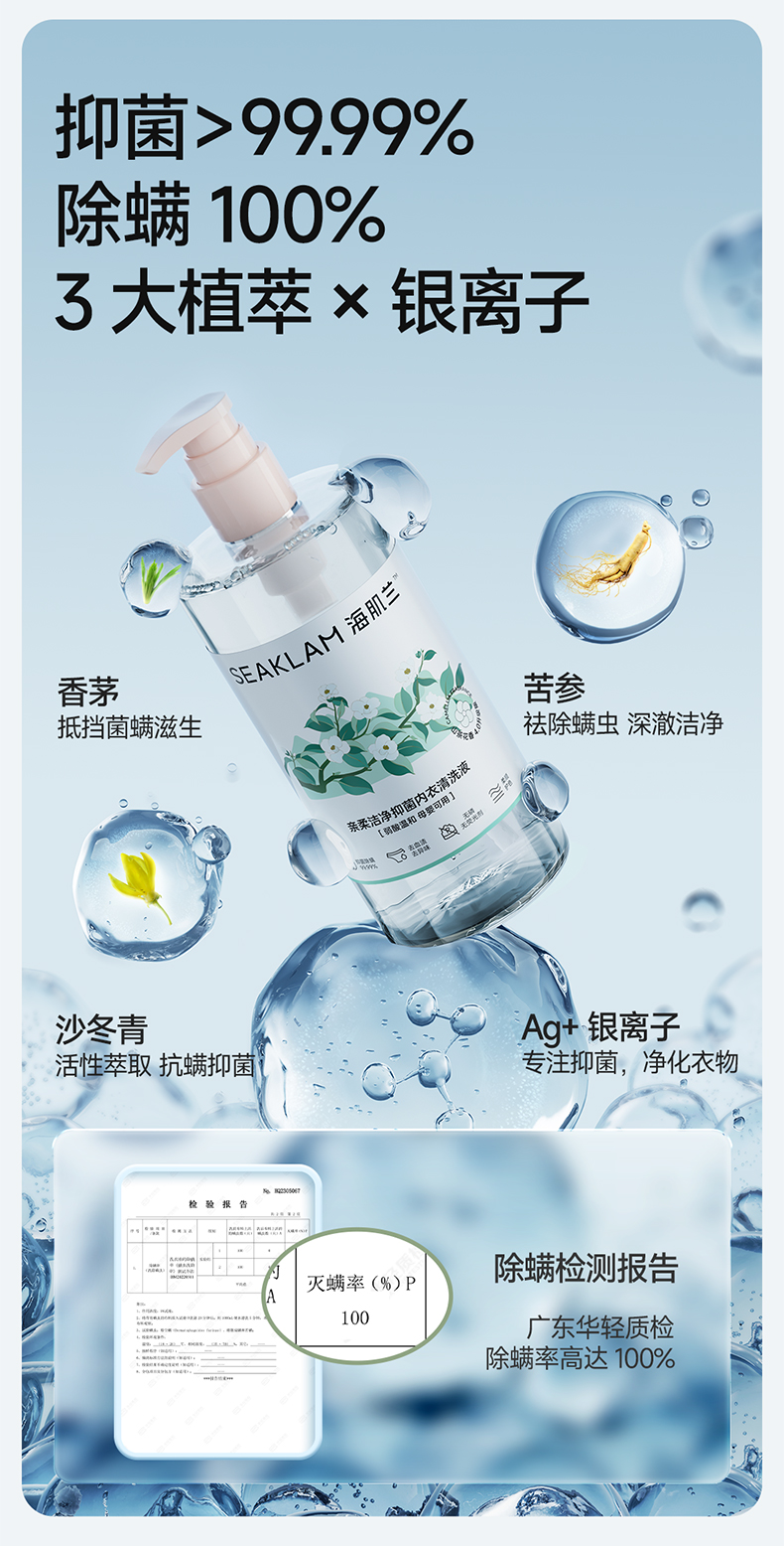 海肌兰亲柔洁净抑菌内衣清洗液550ml(4.0玫瑰香)单位:瓶 粉色