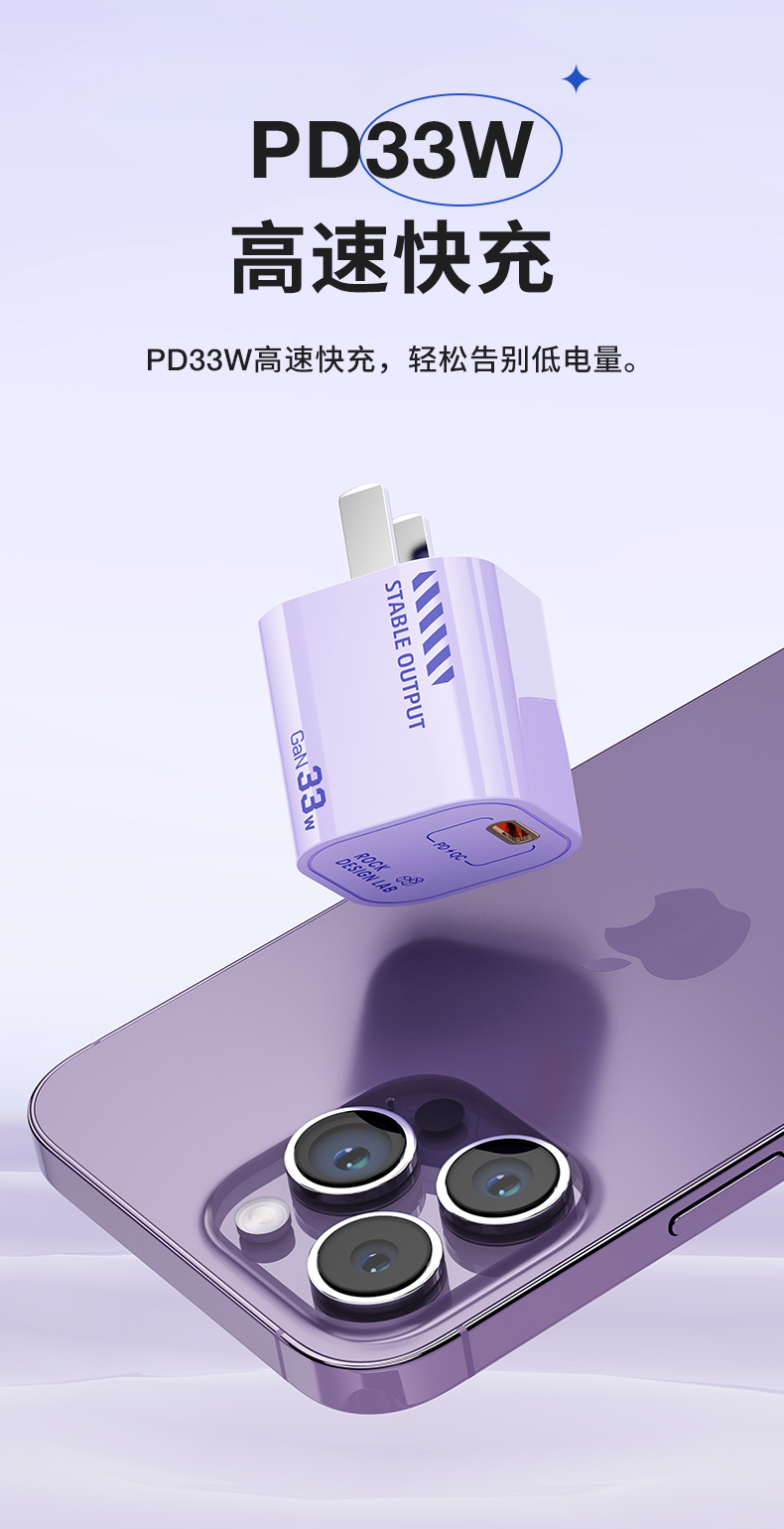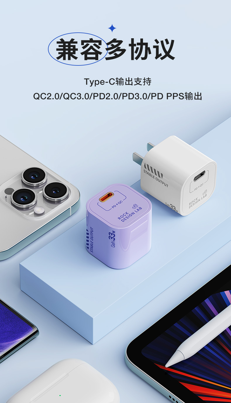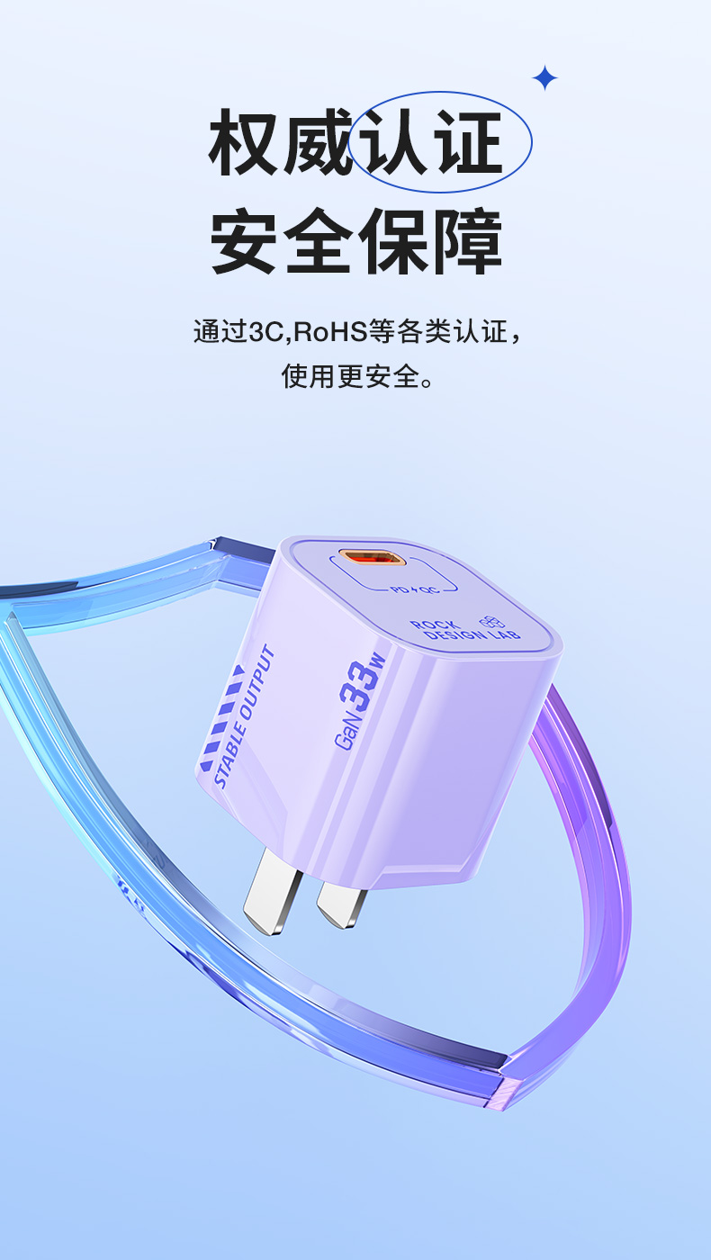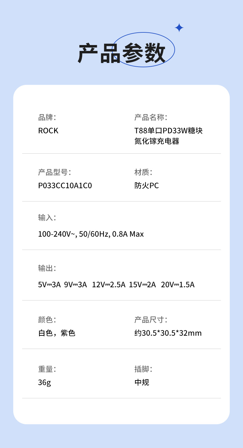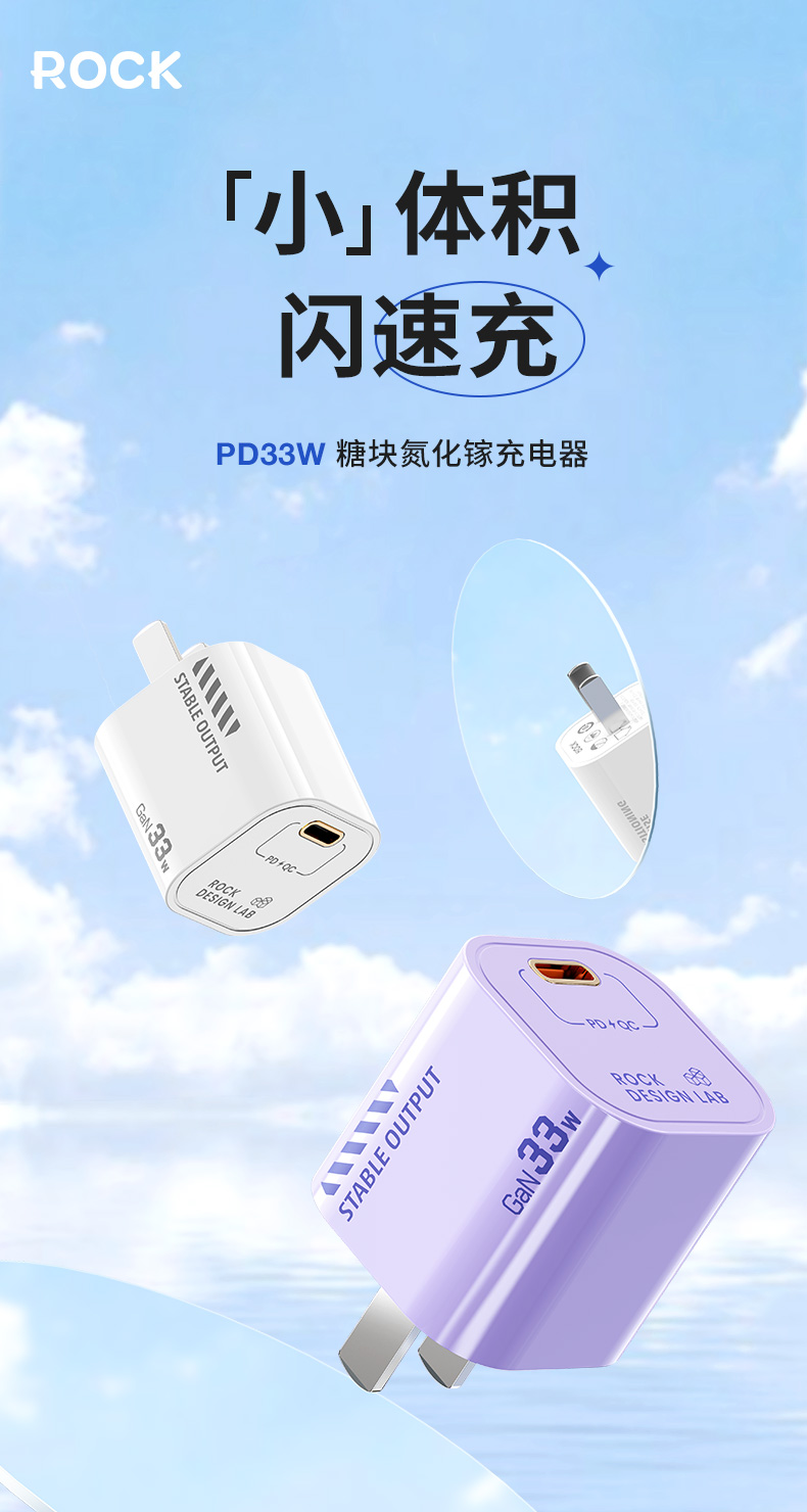 ROCK T88 单口PD33W糖块氮化镓充电头 P033CC10A1C0 白色
