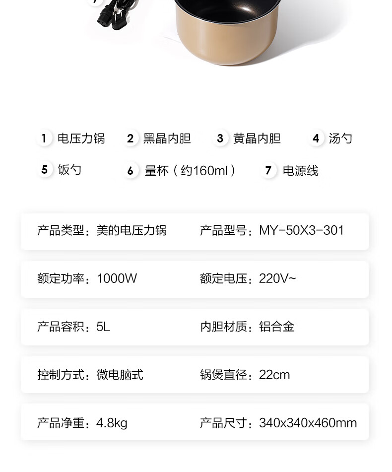 美的(Midea)电压力锅 5升容量双胆 50X3-301(单位:台) 褐色