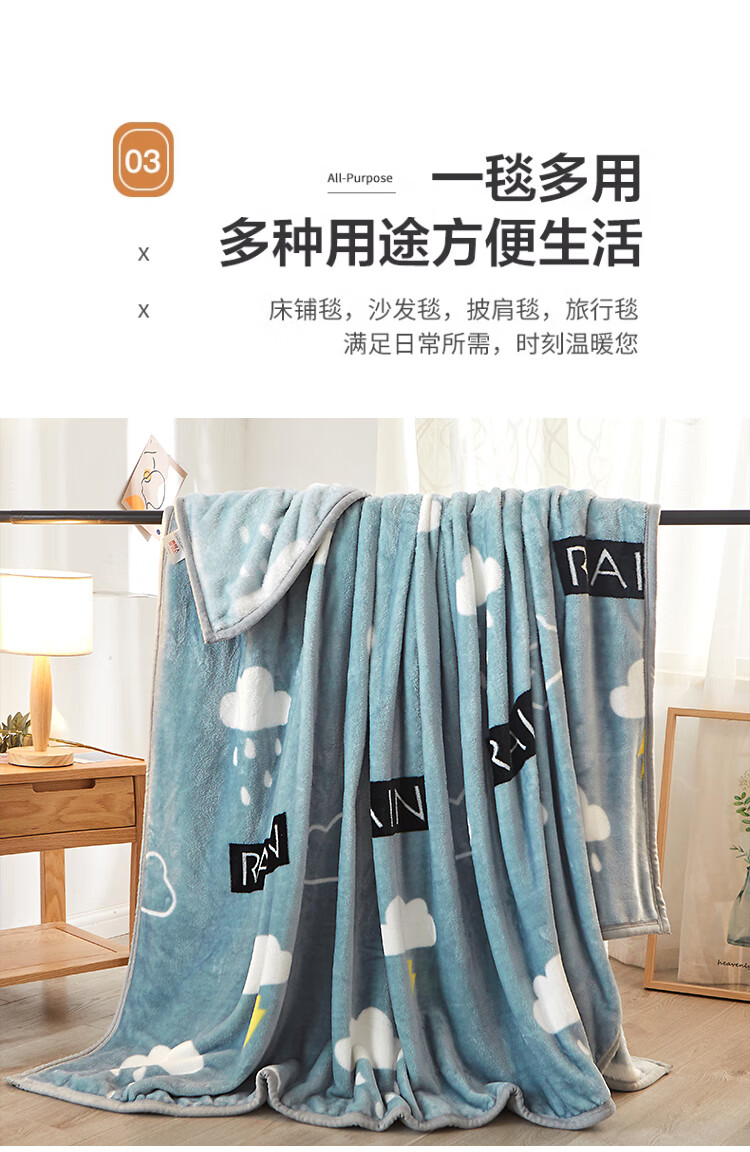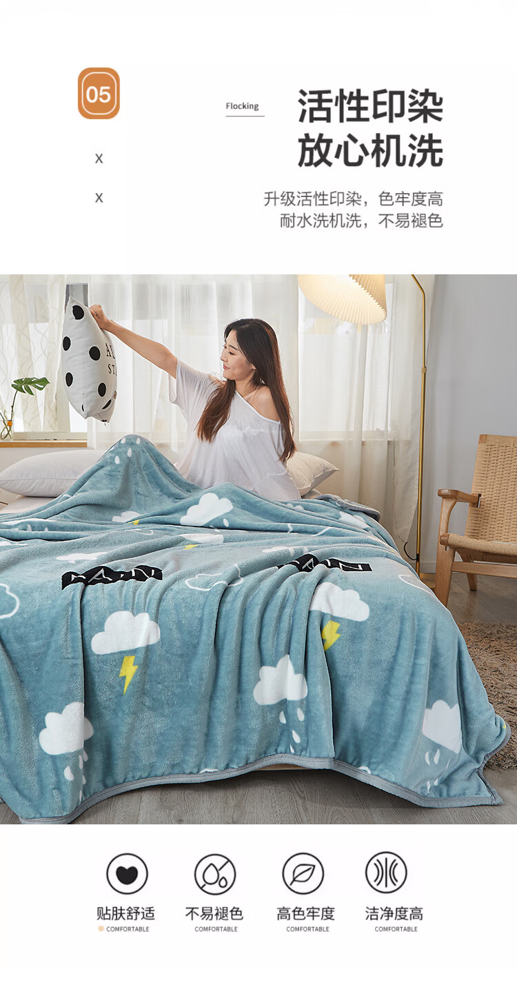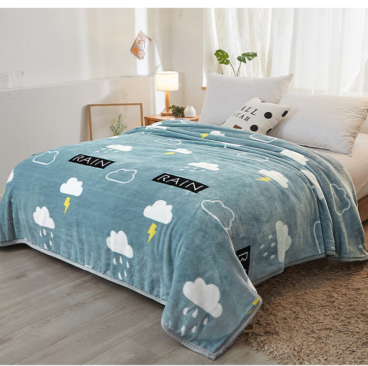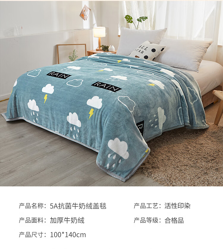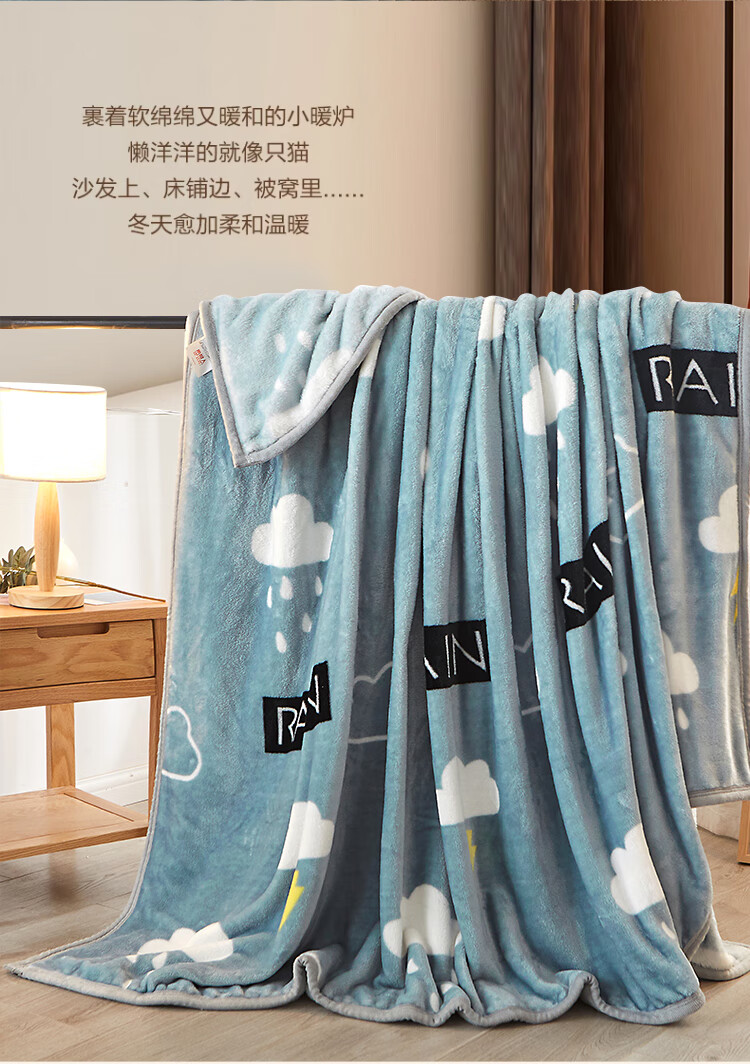 九洲鹿 JZMT99零静电云貂绒毯-灰色天空(白云闪电)100*140cm(单位:条) 灰色