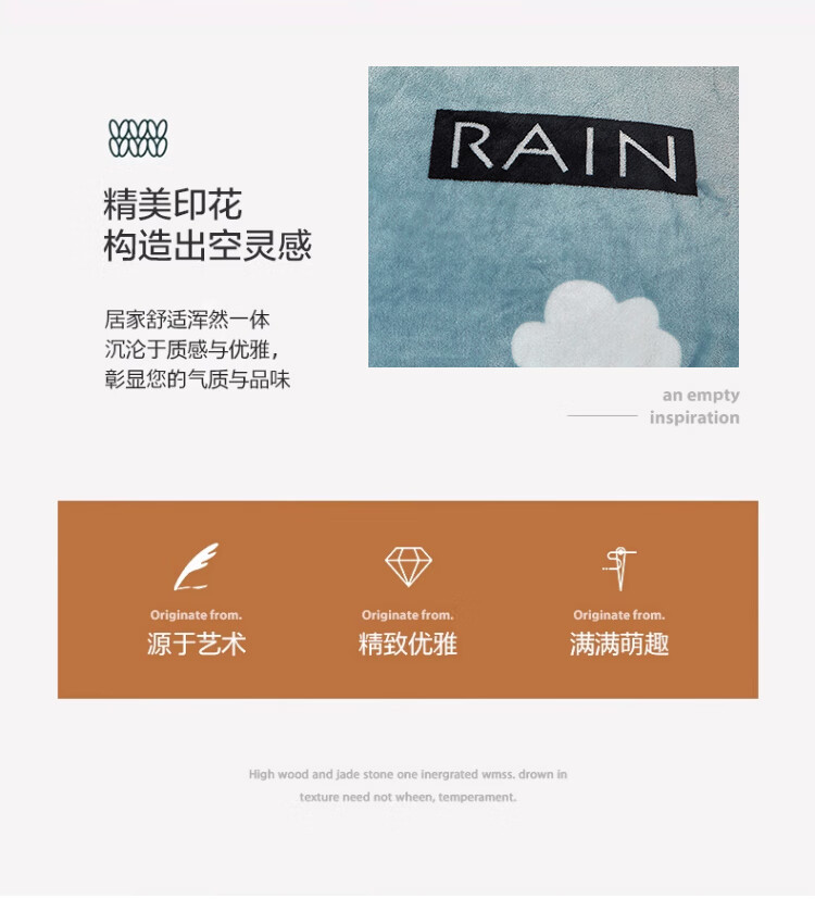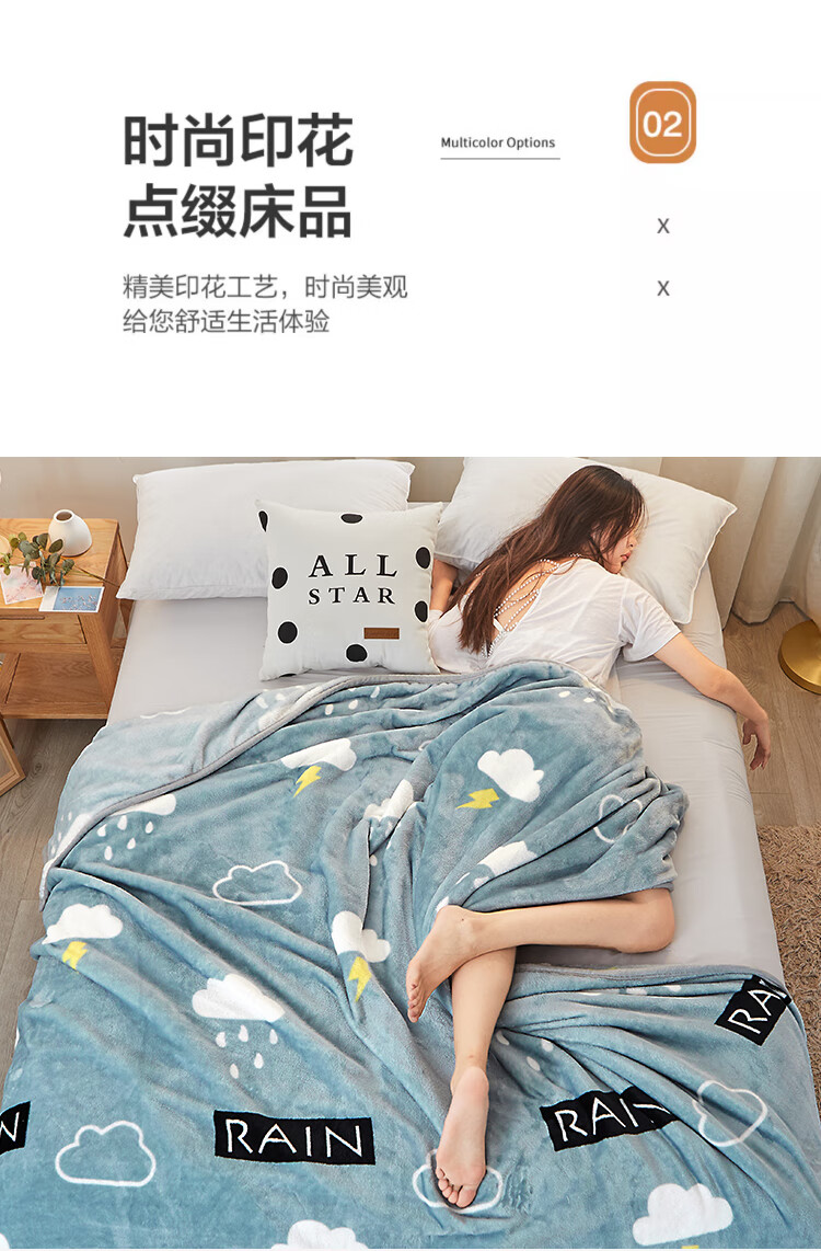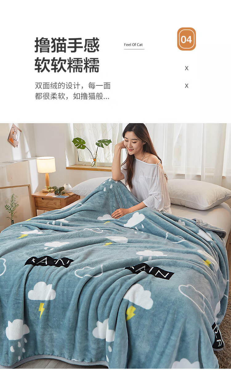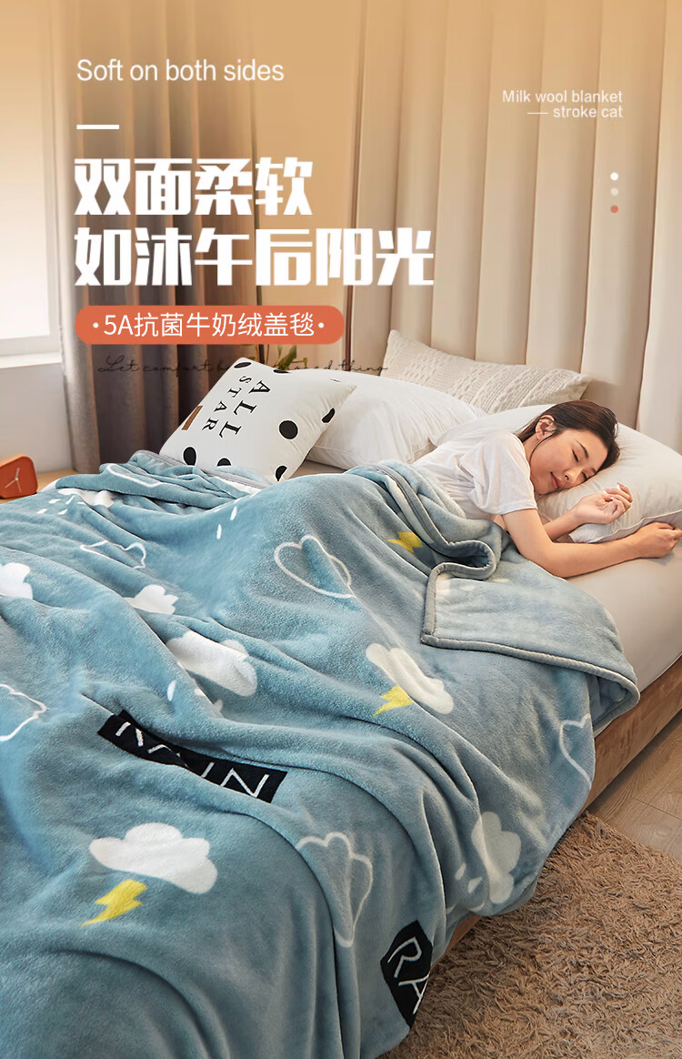 九洲鹿 JZMT99零静电云貂绒毯-灰色天空(白云闪电)100*140cm(单位:条) 灰色