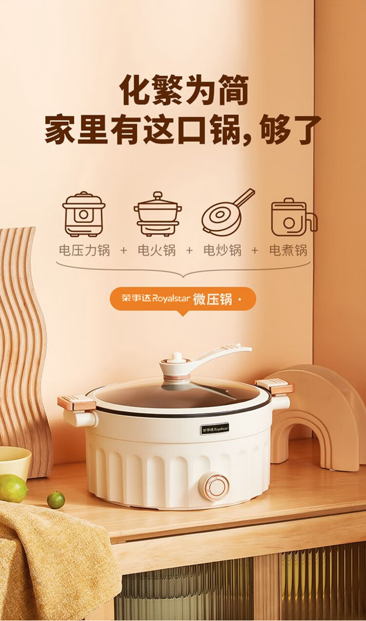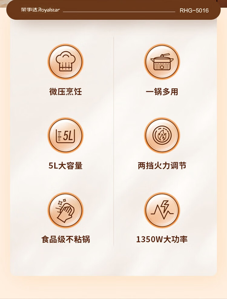 Royalstar荣事达多功能5L微压锅 RHG-5016(单位:台) 米黄色