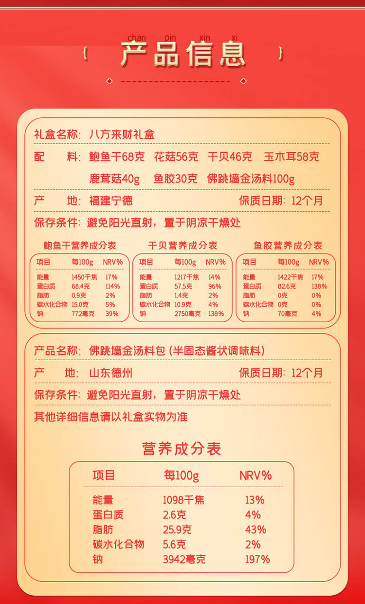 富昌 八方来财海鲜海产佛跳墙礼盒398g(单位:盒) 拿铁色