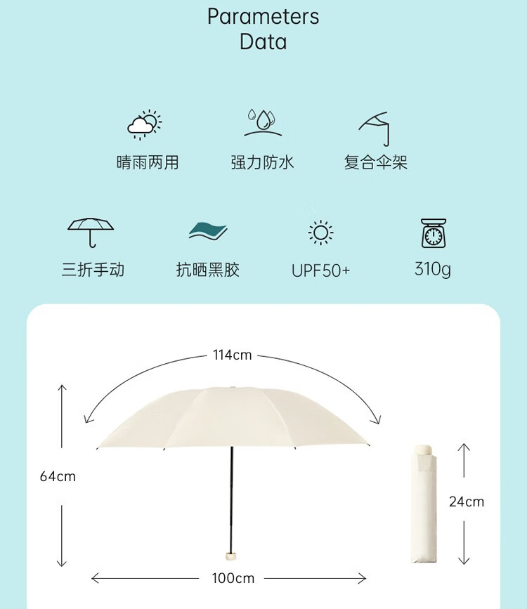 天堂【30727ELST】伞防晒防紫外线三折8骨-/把 午夜蓝