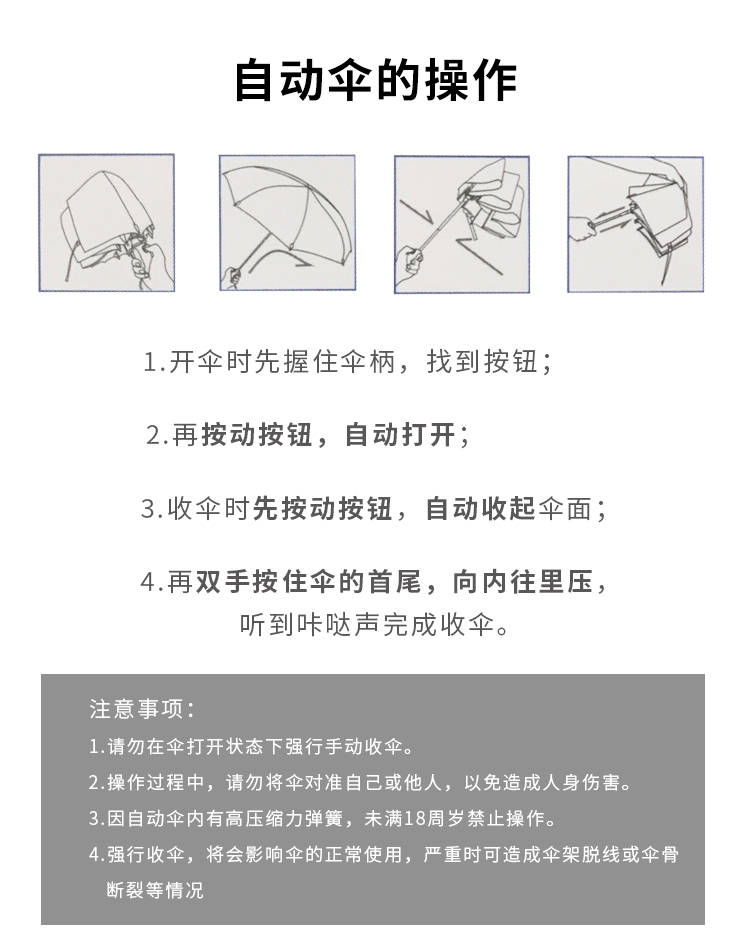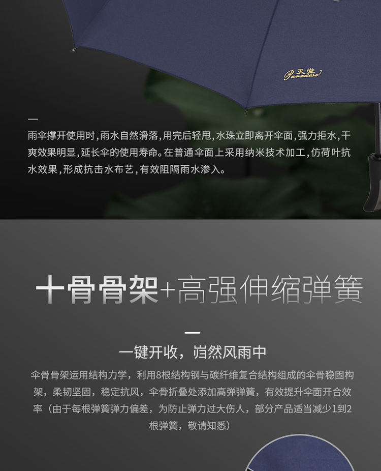 天堂 30729ELST 10骨 一键开收全自动伞 蓝色(单位:把)