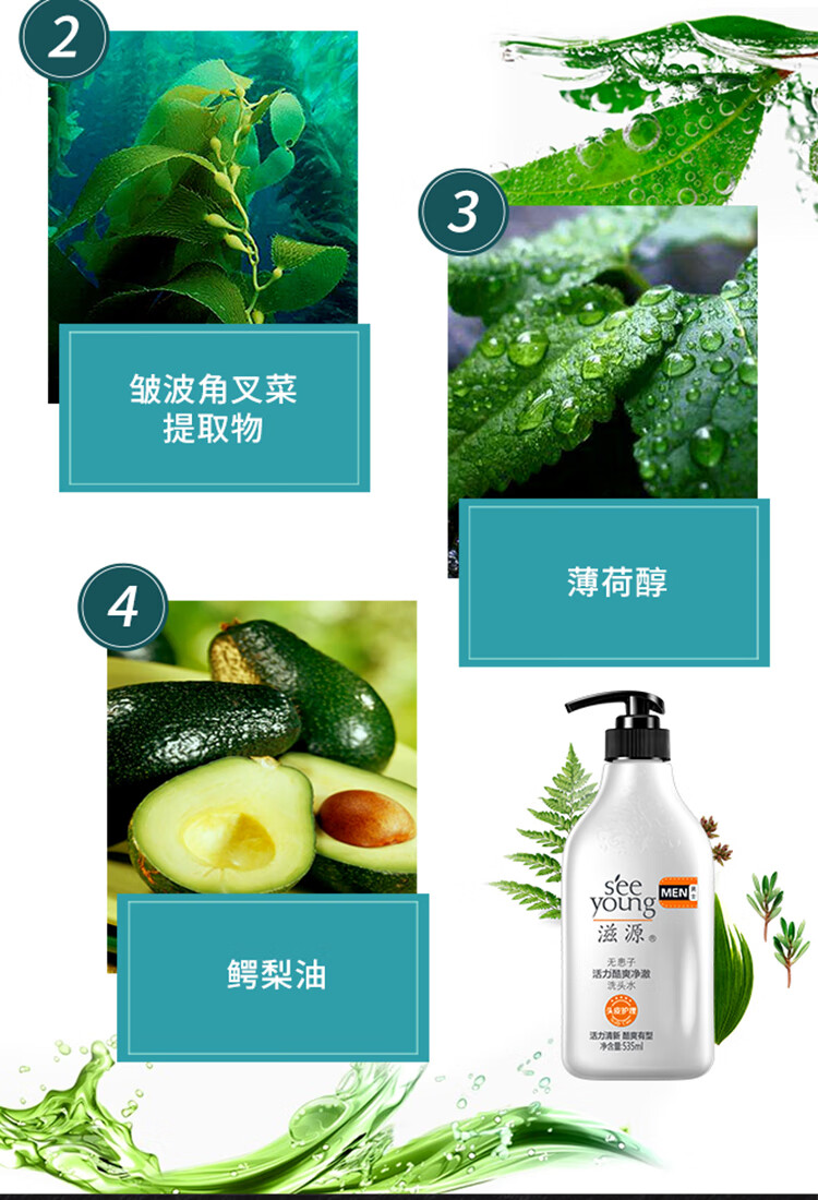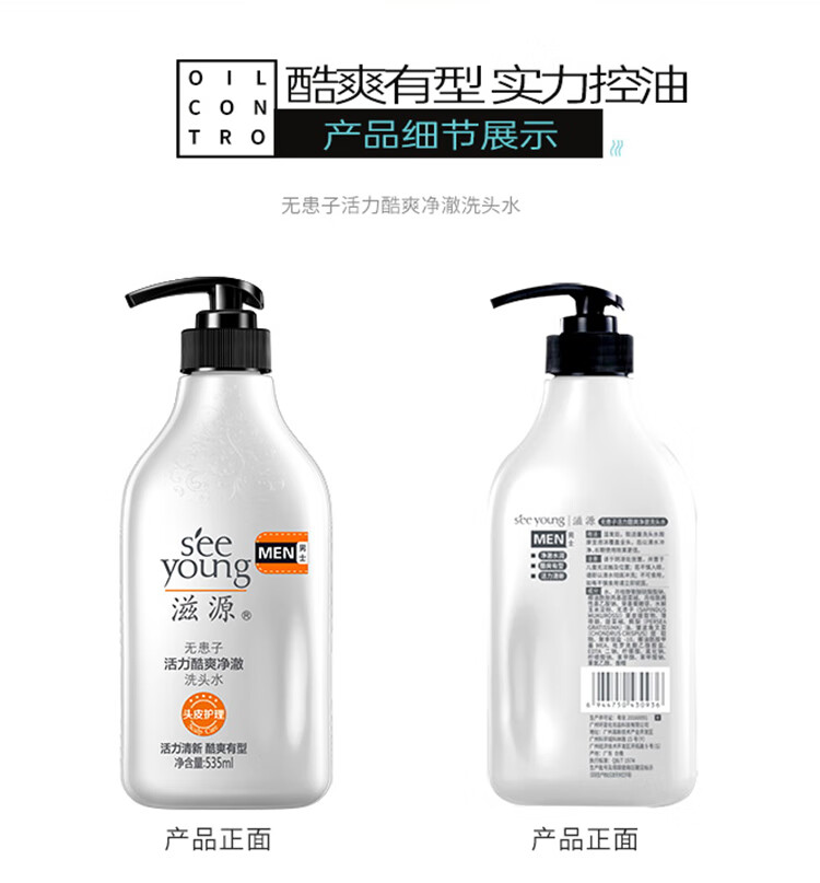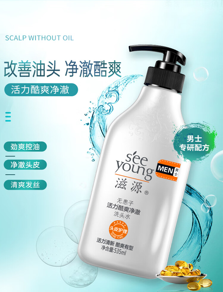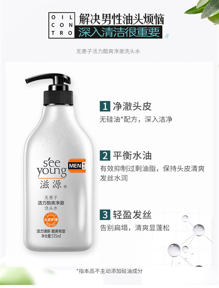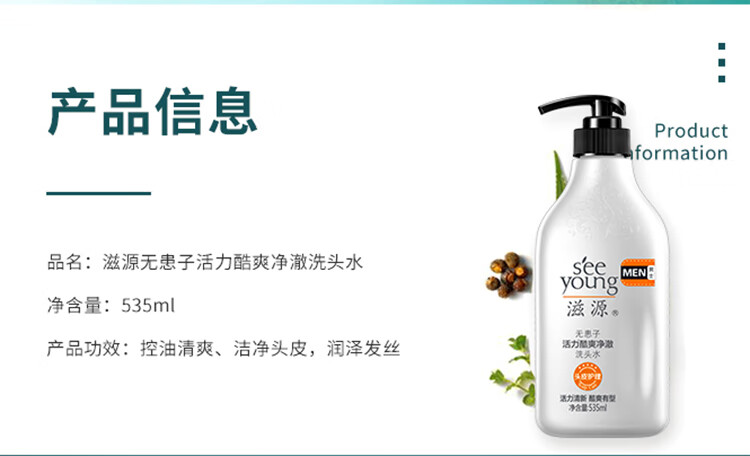 滋源无患子活力酷爽净澈洗头水(男士)(全塑封版) 535ml单位:瓶 白色