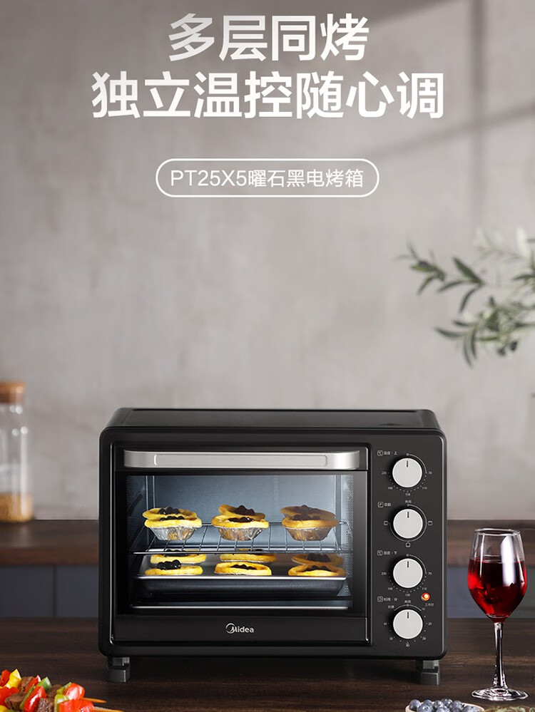 美的(Midea) PT25X5 25L 多功能烘焙烤箱 黑色(单位:台)