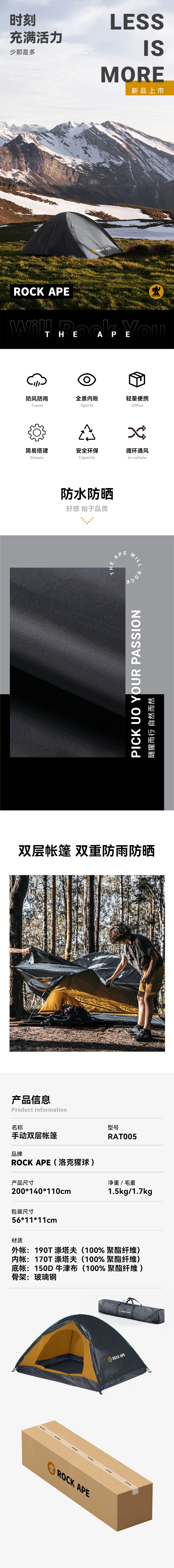洛克猩球 手动双层帐篷 RAT005(单位:个) 多色