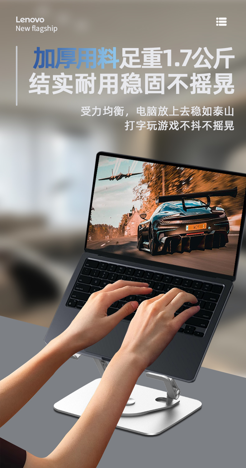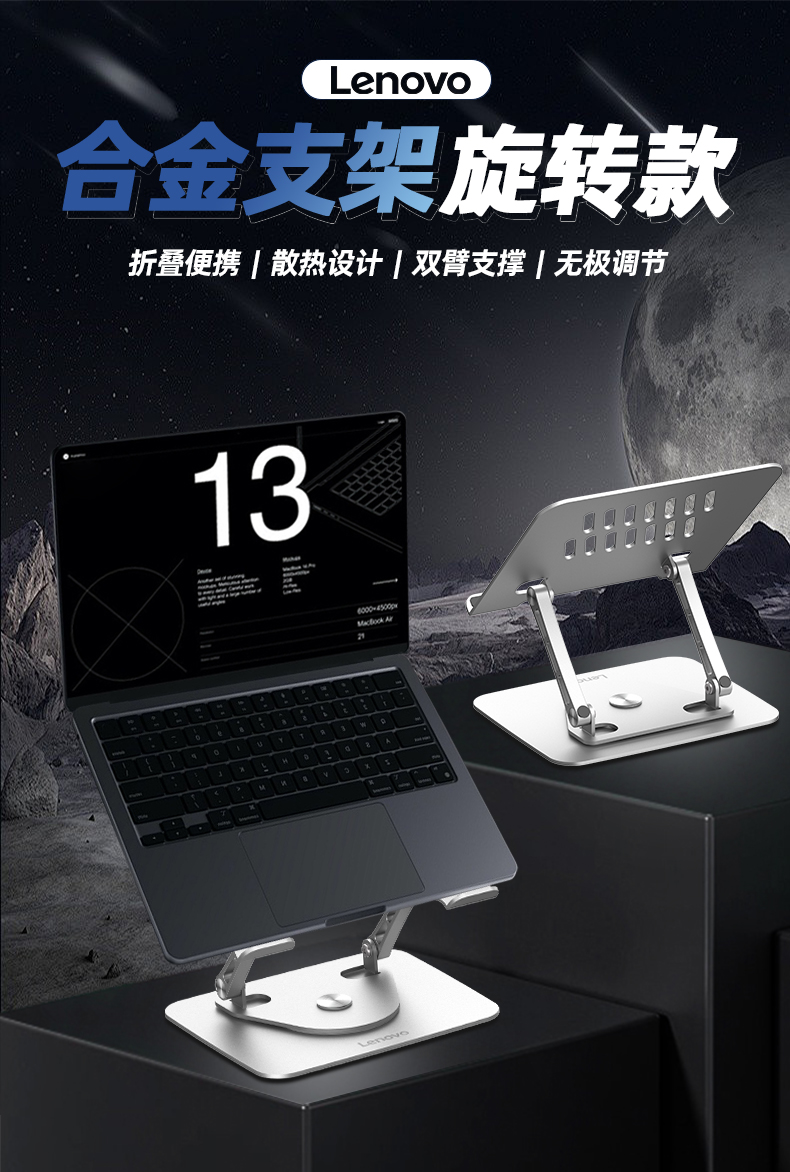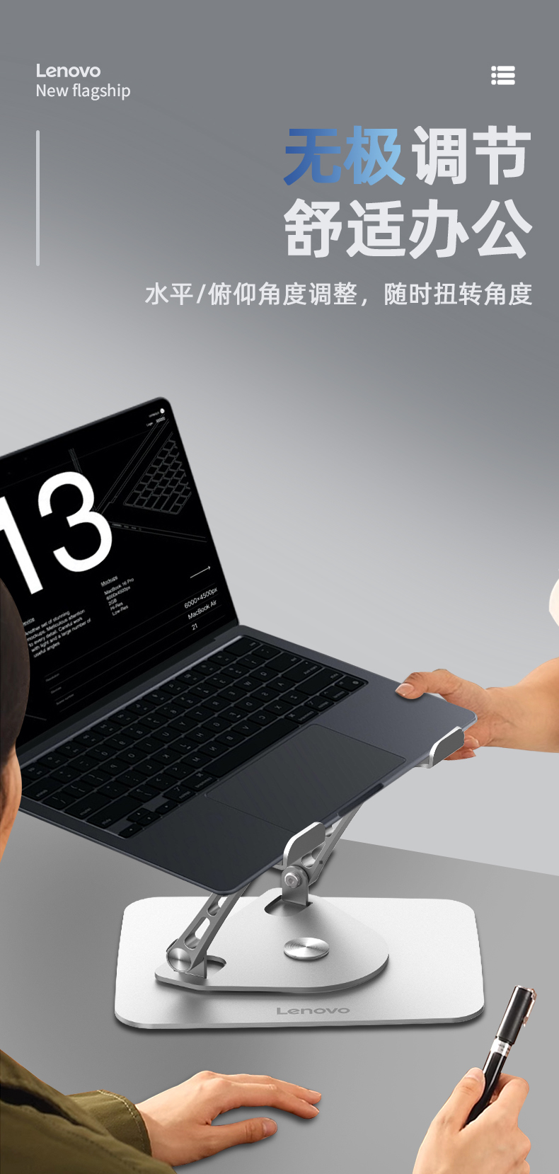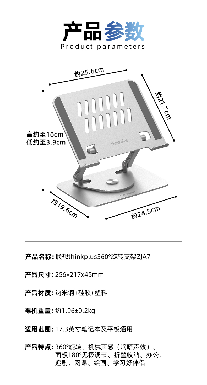 联想(Lenovo) 笔记本电脑支架 ZJA7 360°旋转 尺寸256x217x45mm 银色(单位:件)