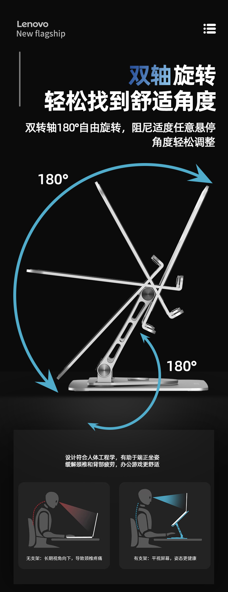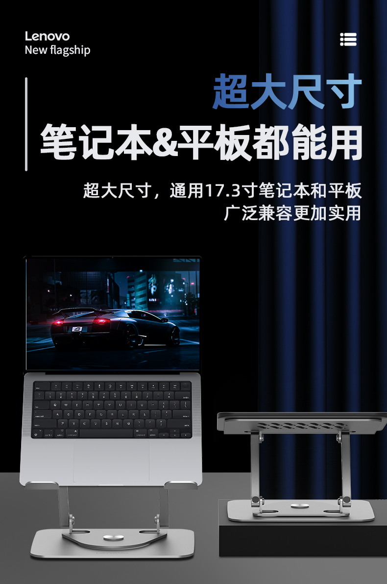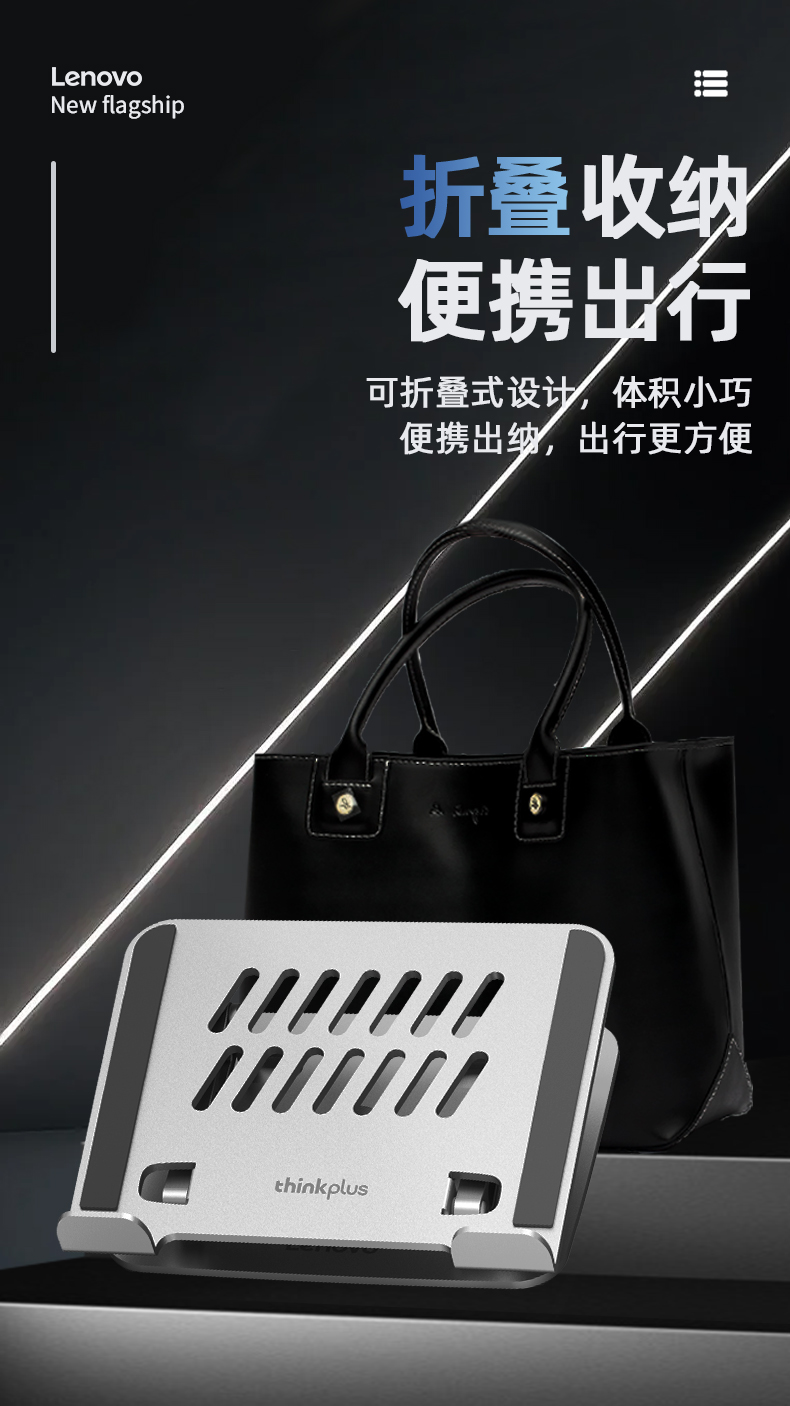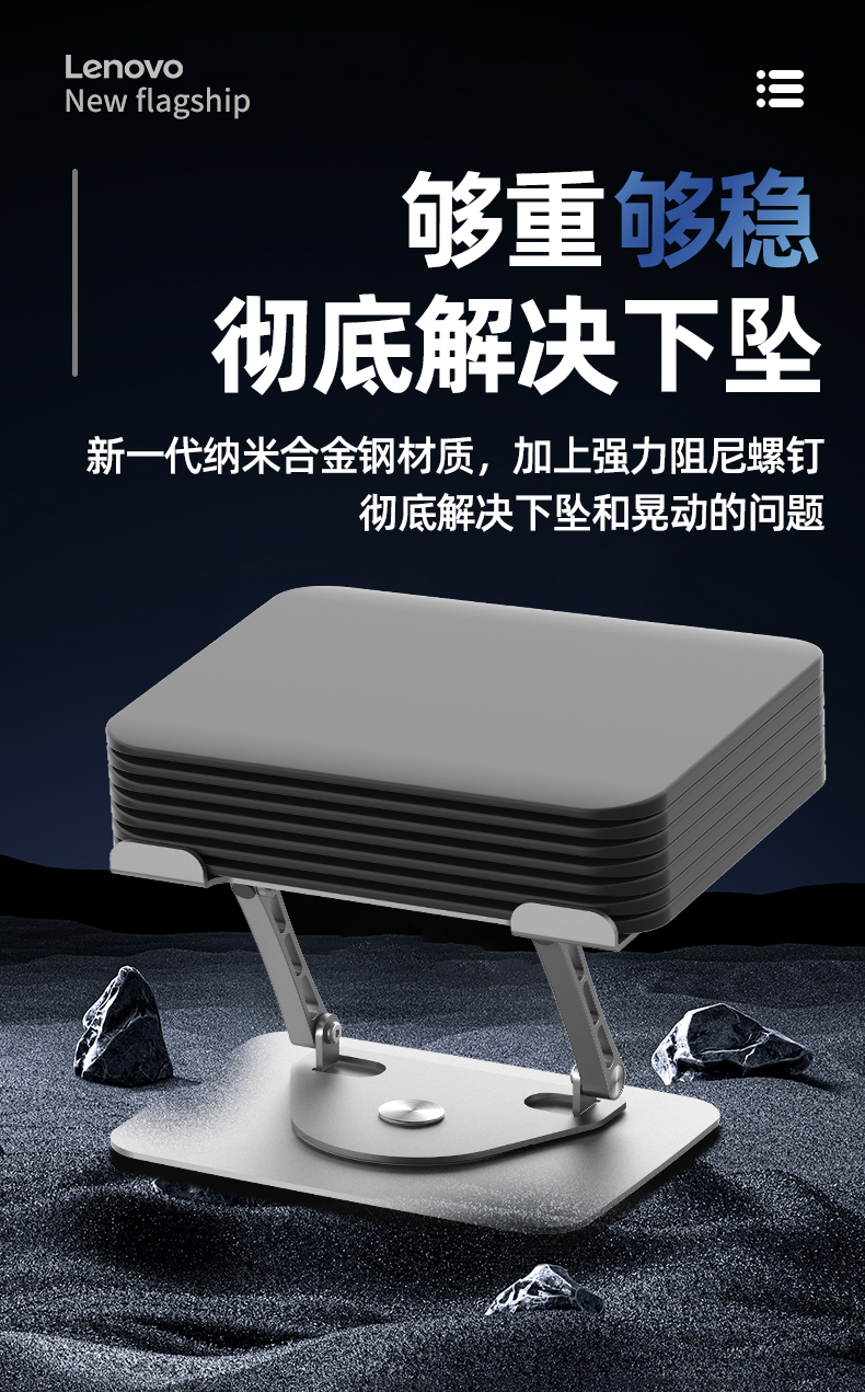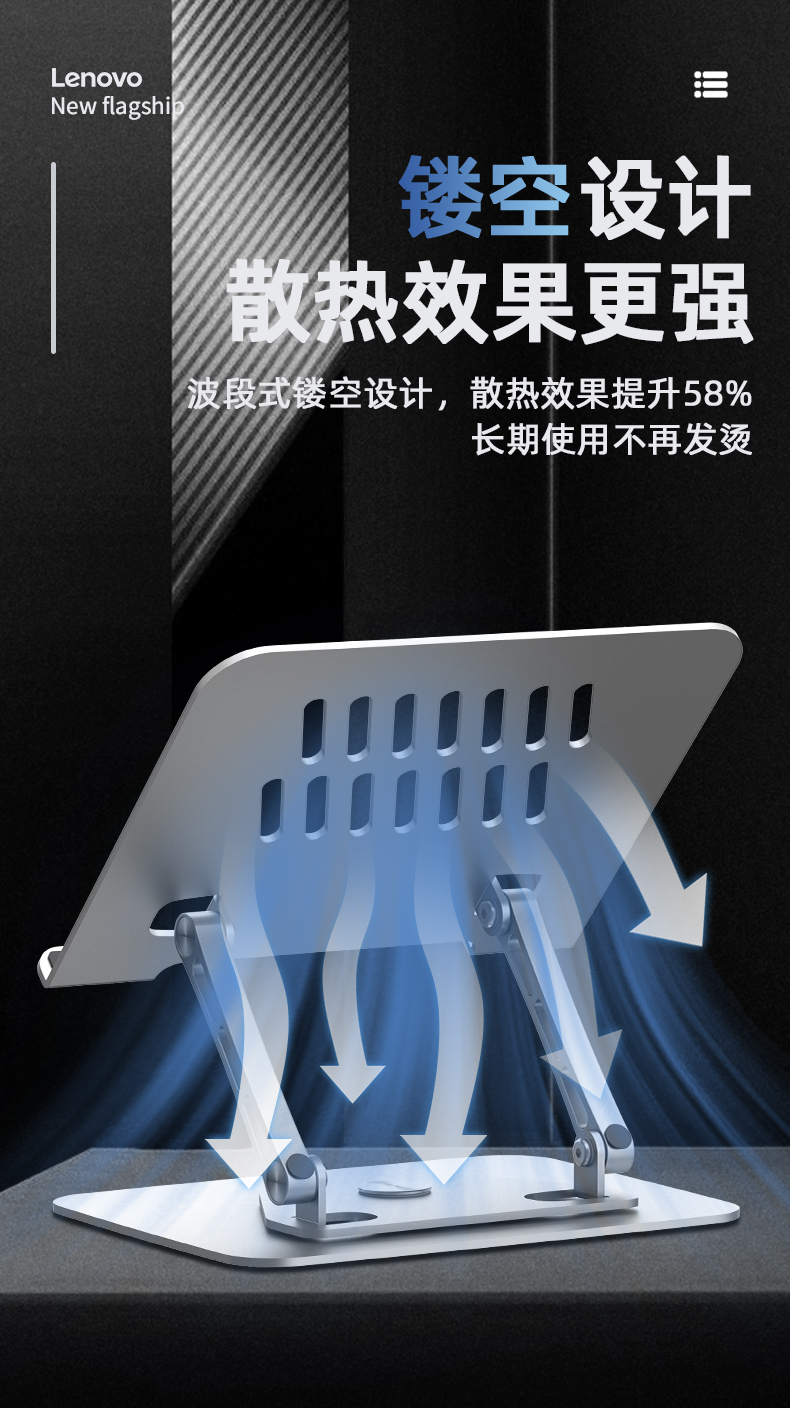 联想(Lenovo) 笔记本电脑支架 ZJA7 360°旋转 尺寸256x217x45mm 银色(单位:件)