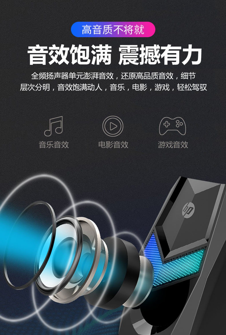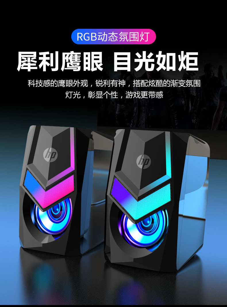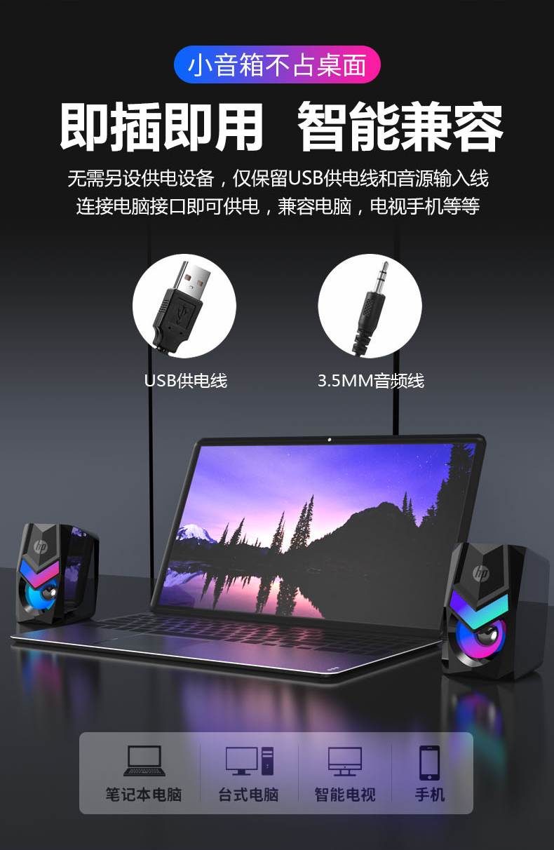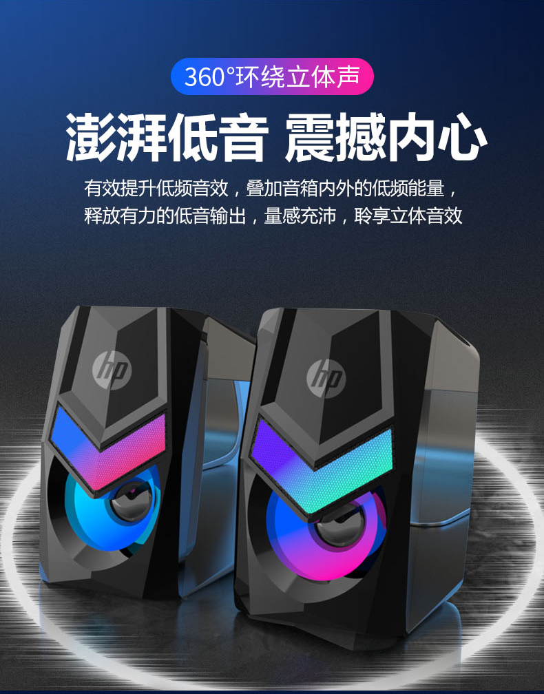 惠普(HP) 电脑音箱音响笔记本台式机通用家用桌面迷你小音箱USB外接RGB发光低音炮多媒体 DHE 彩色