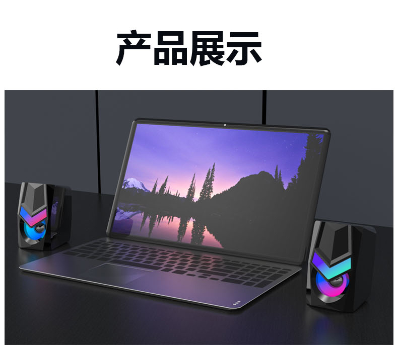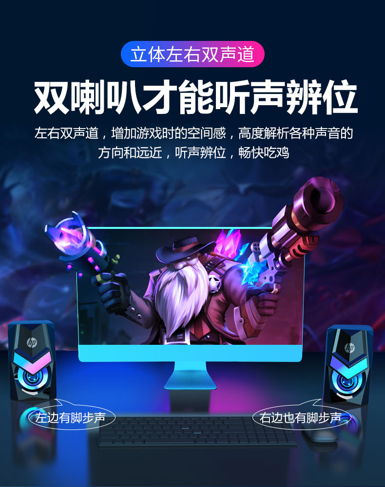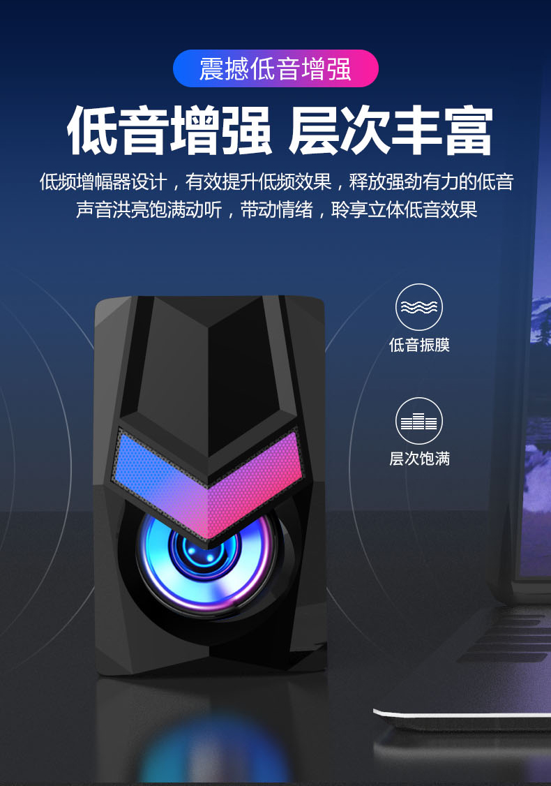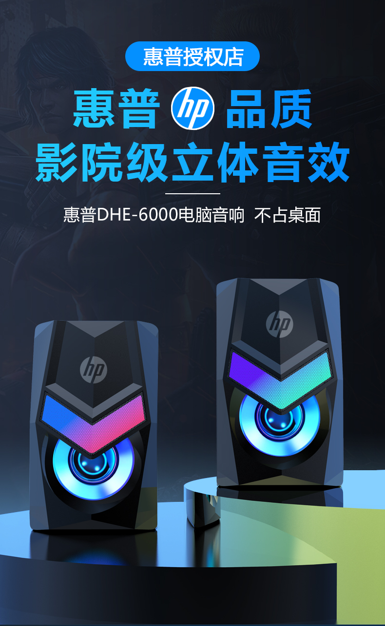 惠普(HP) 电脑音箱音响笔记本台式机通用家用桌面迷你小音箱USB外接RGB发光低音炮多媒体 DHE 彩色
