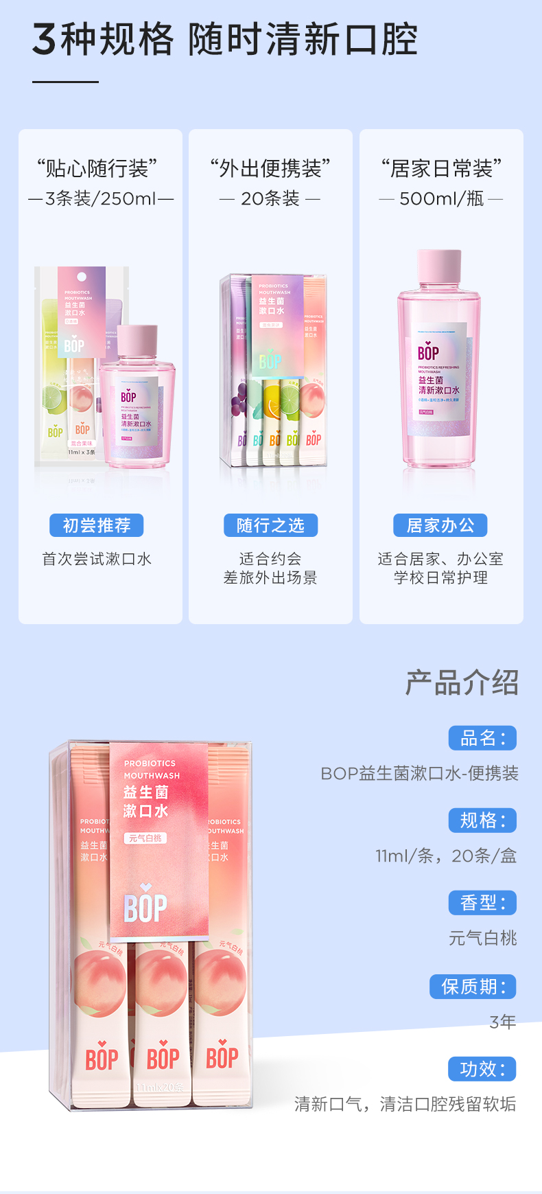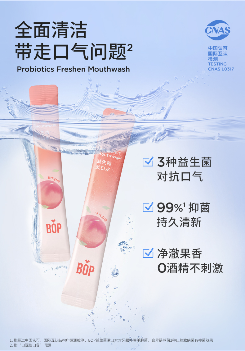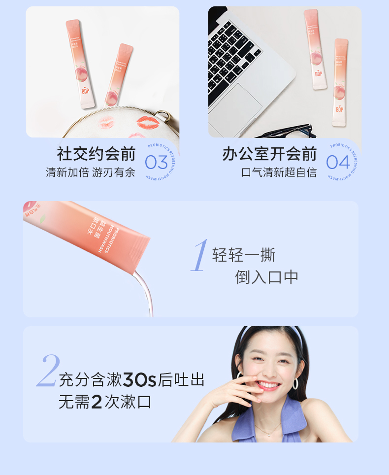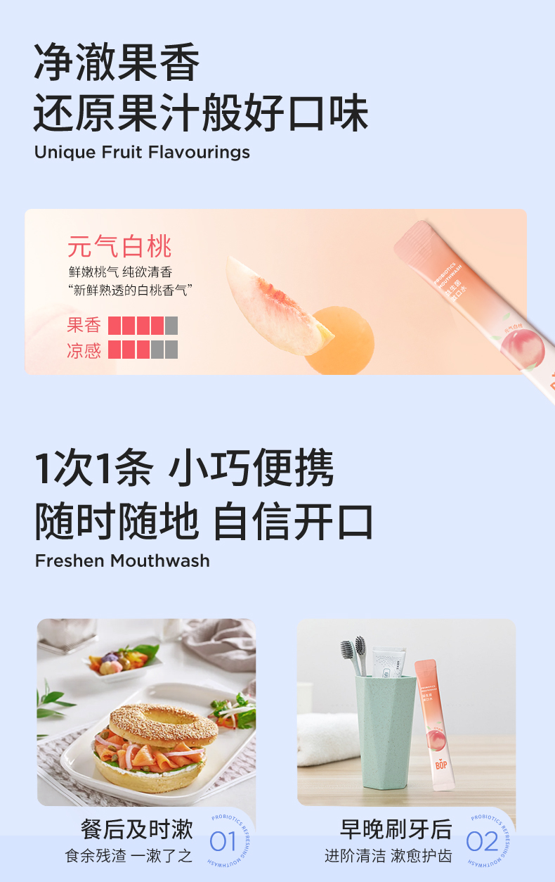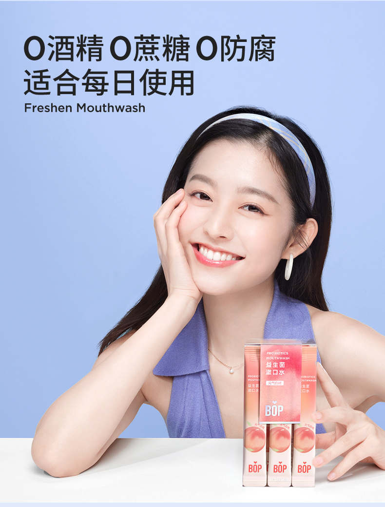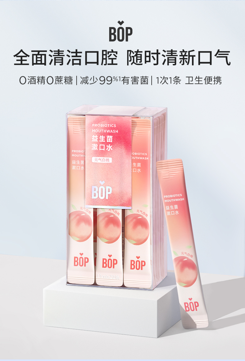 波普专研(bop)益生菌漱口水元气白桃口味11ml*20(单位:盒) 豆沙色