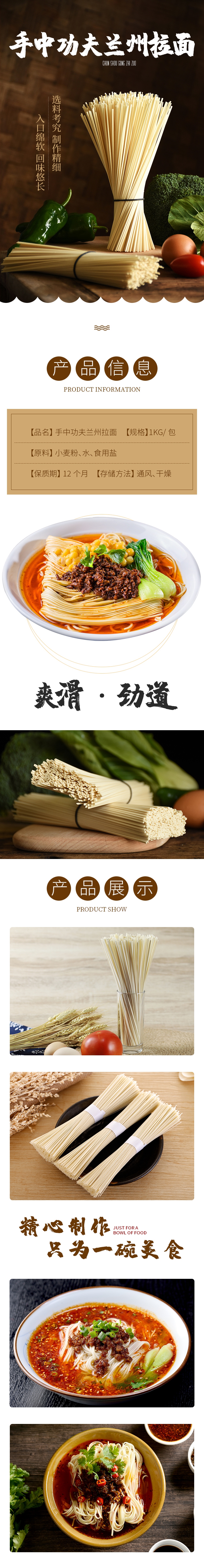 手中功夫 兰州拉面1kg*2袋 拿铁色