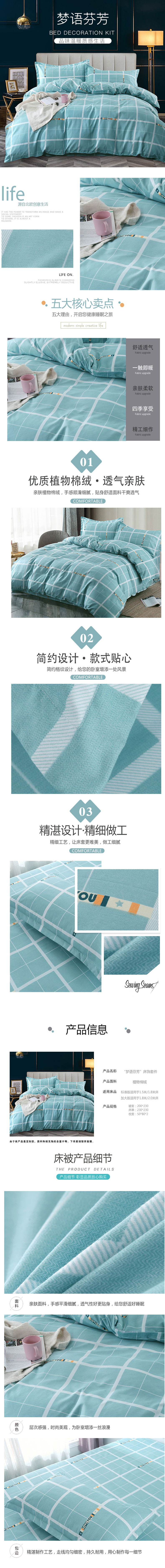 紫韵“梦语芬芳”ZY-BT1170床饰套件 水蓝色